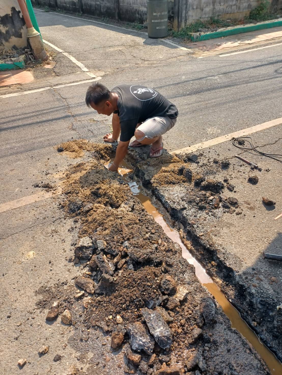 ซ่อมท่อเมนประปา 1 1/2" บริเวณถนนราษฎร์บำรุง
