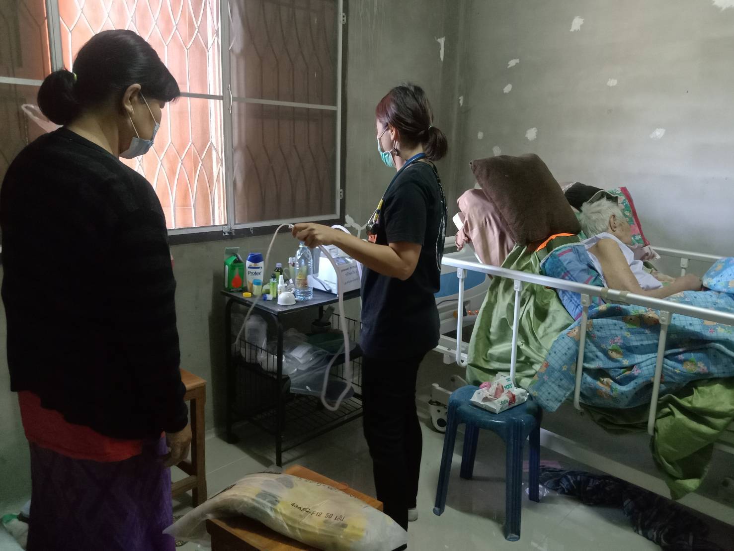 งานศูนย์บริการฯ ลงพื้นที่ติดตามอาการผู้สูงอายุเนื่องจากไข้ ทานได้น้อย และติดตั้งเครื่องดูดเสมหะให้กับผู้ป่วยติดเตียง สอนญาติใช้เครื่องดูดเสมหะ จำนวน 2 ราย ณ ชุมชนยางกะไดใต้ และชุมชนบ้านหนอง