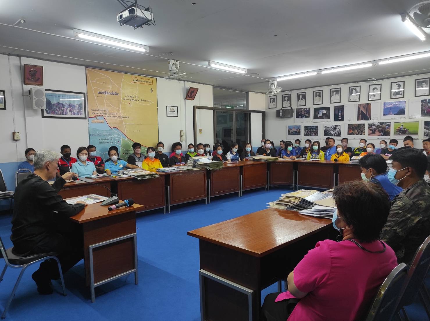 ท่านนายกฯ ประชุมมอบหมายภารกิจให้กับพนักงานที่มีหน้าที่ลงพื้นที่ในการแจกปฎิทินประจำปีและวารสาร ‘ศรีพนมมาศสาร’ ให้กับประชาชนภายในเขต ณ ห้องประชุมสภาเทศบาลตำบลศรีพนมมาศ
