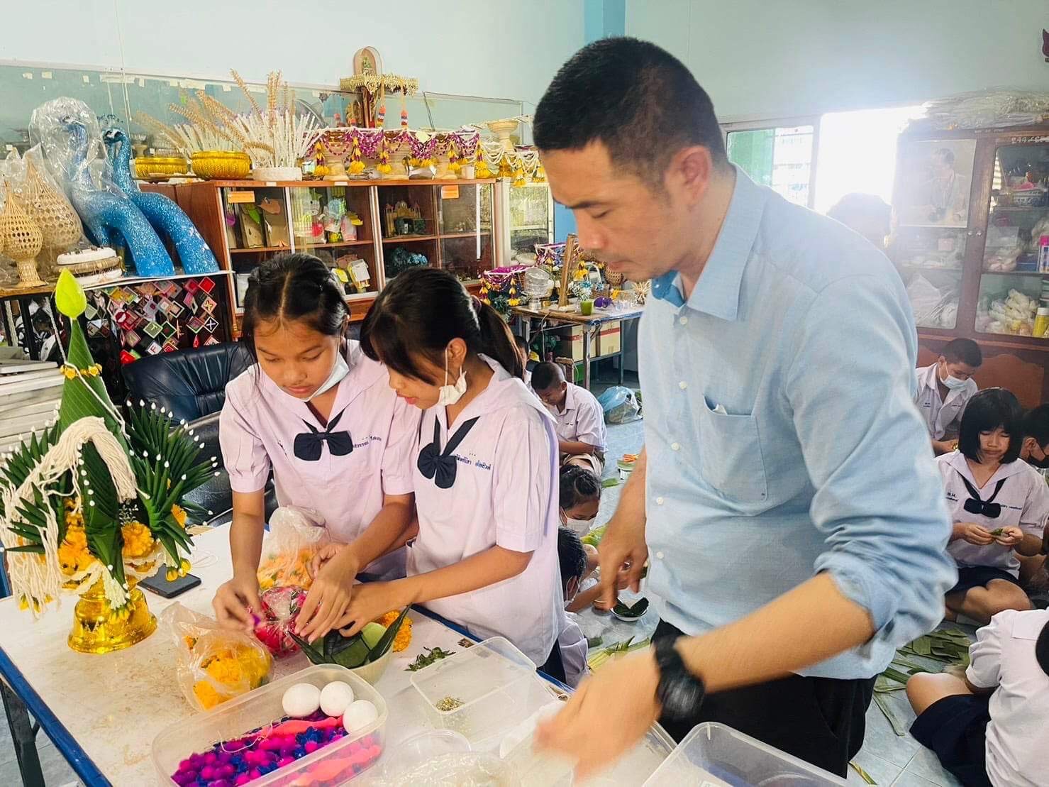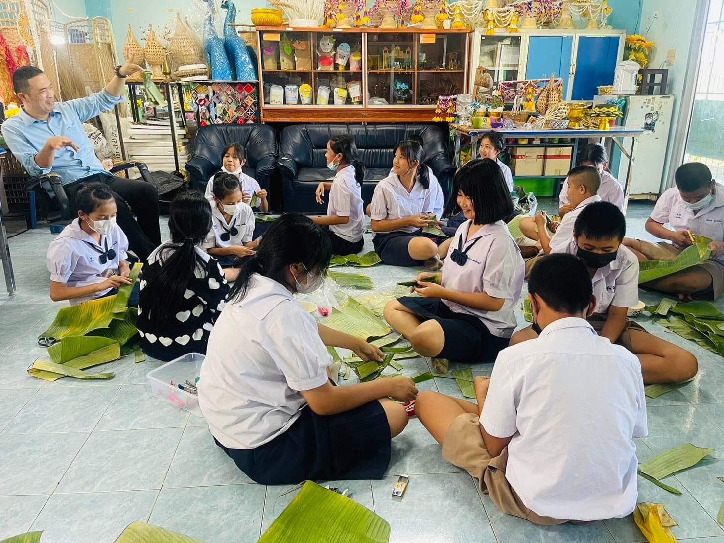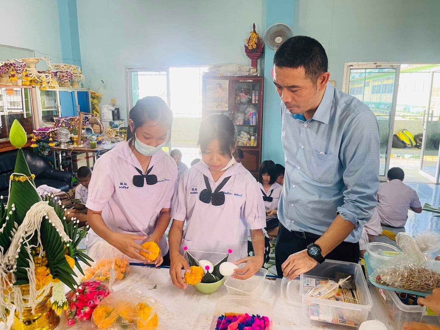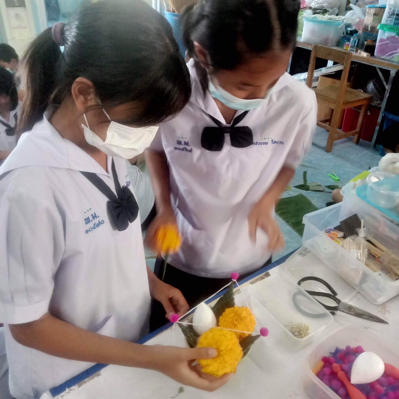 กลุ่มสาระการเรียนรู้การงานอาชีพ โรงเรียนพนมมาศพิทยากร จัดกิจกรรมให้นักเรียนได้ปฏิบัติการประดิษฐ์บายศรีพื้นบ้านลับแลจากวัสดุในท้องถิ่น