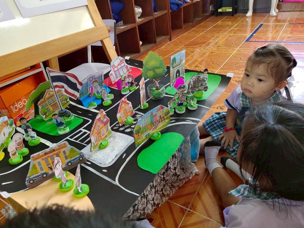 เด็กเรียนรู้เกี่ยวกับชุมชนเป็นสถานที่มีคนอยู่ร่วมกันจำนวนมาก มีความรักและผูกพันกันทำกิจกรรมร่วมกันในชุมชนและคอยดูแลรักษาความสะอาดของชุมชนให้น่าอยู่