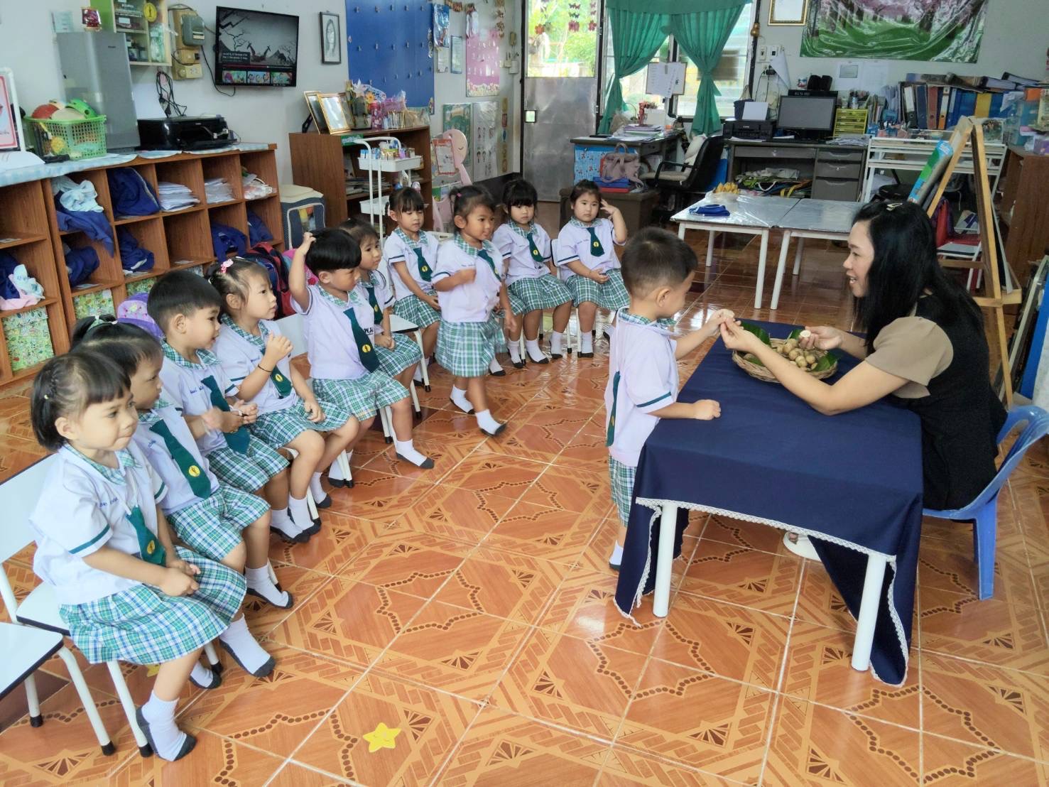 เด็กเรียนรู้เกี่ยวกับชื่ออำเภอ/คำขวัญของอำเภอ/อาชีพของบุคคลในอำเภอ/อาหารพื้นเมืองของอำเภอ/สถานที่สำคัญของอำเภอ เด็กได้เรียนรู้จากสื่อของจริง ได้เรียนรู้นอกสถานที่จากชุมชนในเขตเทศบาลตำบลศรีพนมมาศและพิพิธภัณฑ์เมืองลีบแล อีกด้วย