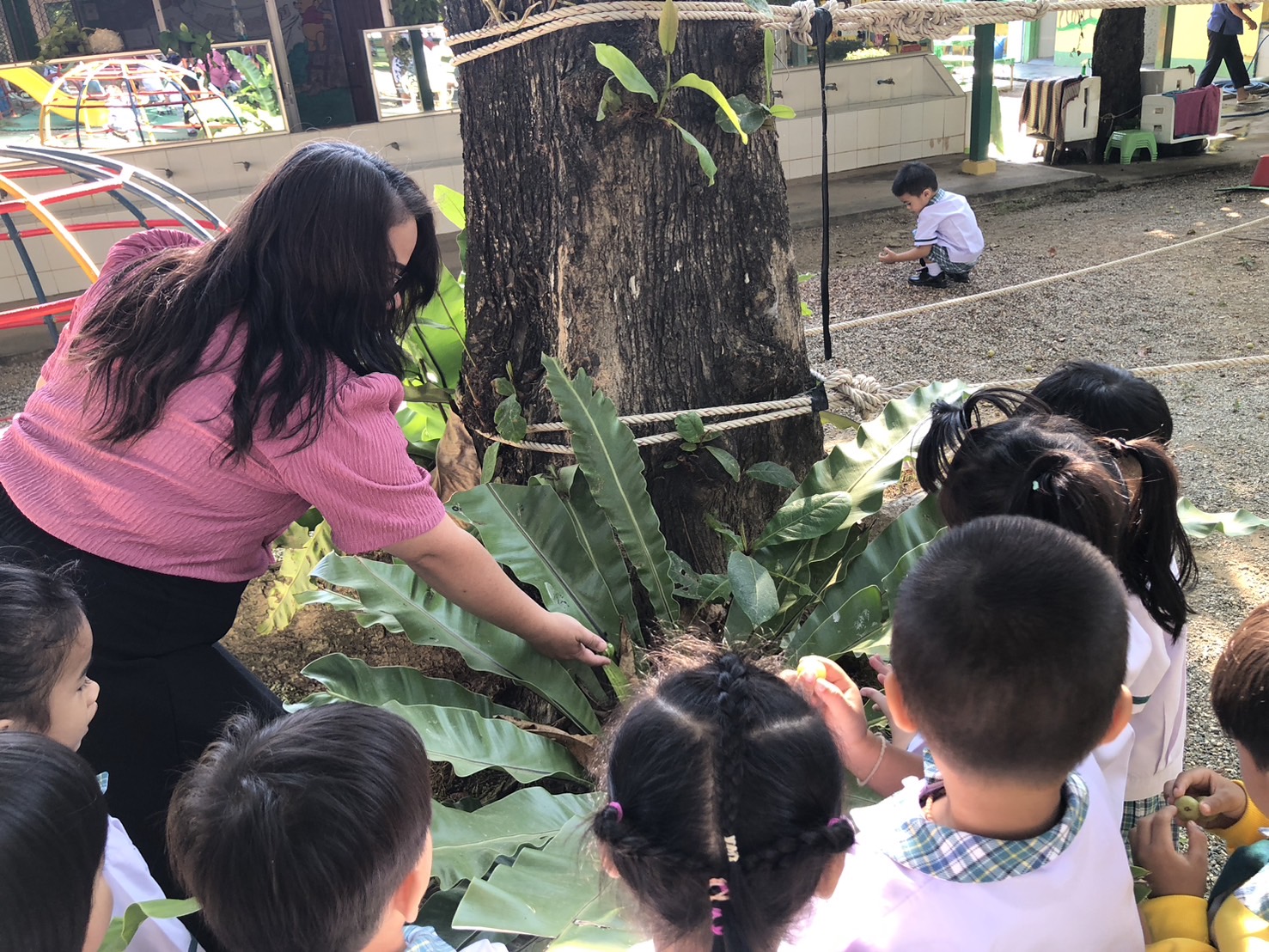 เด็กได้เรียนรู้เกี่ยวกับ ประเภท รูปร่าง ลักษณะ การเจริญเติบโต การอนุรักษ์ ประโยชน์และโทษของต้นไม้ โดยจัดกิจกรรมเคลื่อนไหวและจังหวะ กิจกรรมเสริมประสบการณ์ กิจกรรมสร้างสรรค์ กิจกรรมเสรี กิจกรรมกลางแจ้ง และเกมการศึกษา เพื่อให้เด็กได้เรียนรู้ แลกเปลี่ยนความคิด มีประสบการณ์ใหม่ๆ และเพื่อส่งเสริมพัฒนาการของเด็กทุกด้านให้เหมาะสมกับวัย