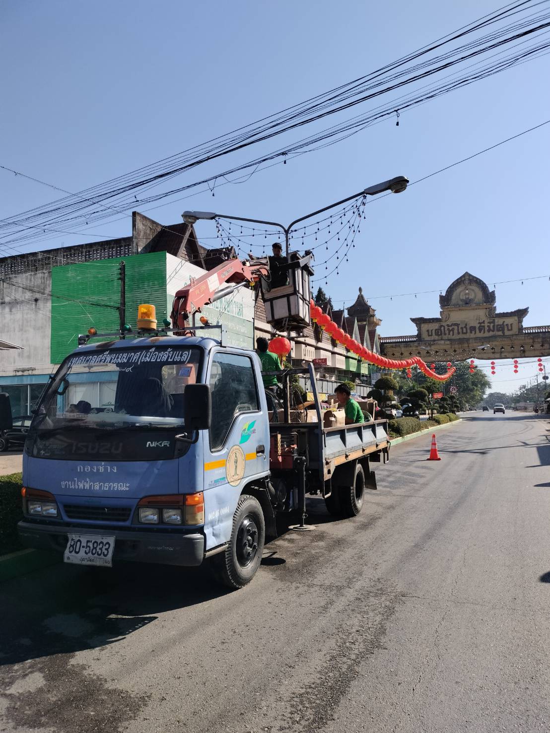 ติดโคมจีน บริเวณเกาะกลางถนนอินใจมี และบริเวณด้านหน้าตลาดสดเทศบาลตำบลศรีพนมมาศ