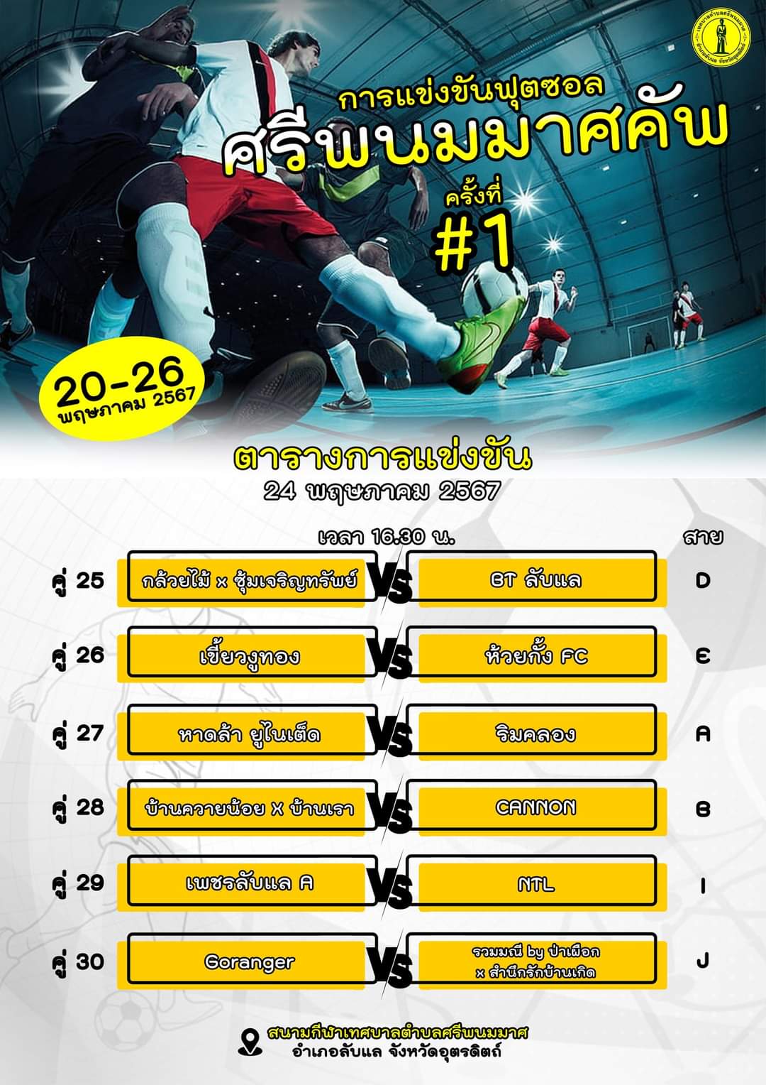 สรุปผลการแข่งขันกีฬาฟุตซอลศรีพนมมาศคัพประจำวันที่ 24 พฤษภาคม 2567 ดังนี้
