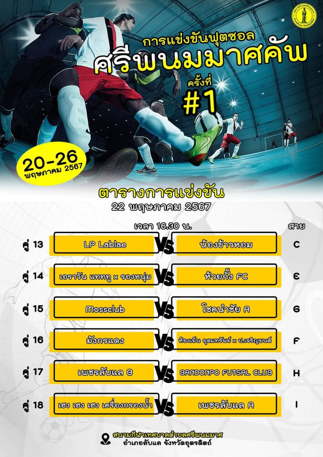 ผลการแข่งขันกีฬาฟุตซอล ประจำวันที่ 22 พฤษภาคม 2567