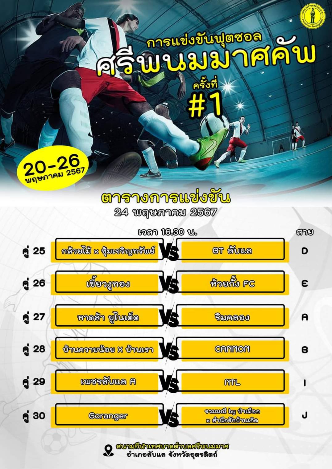 ผลการแข่งขันฟุตซอล ประจำวันที่ 23 พฤาภาคม 2567