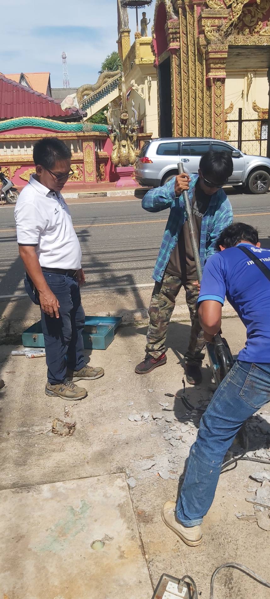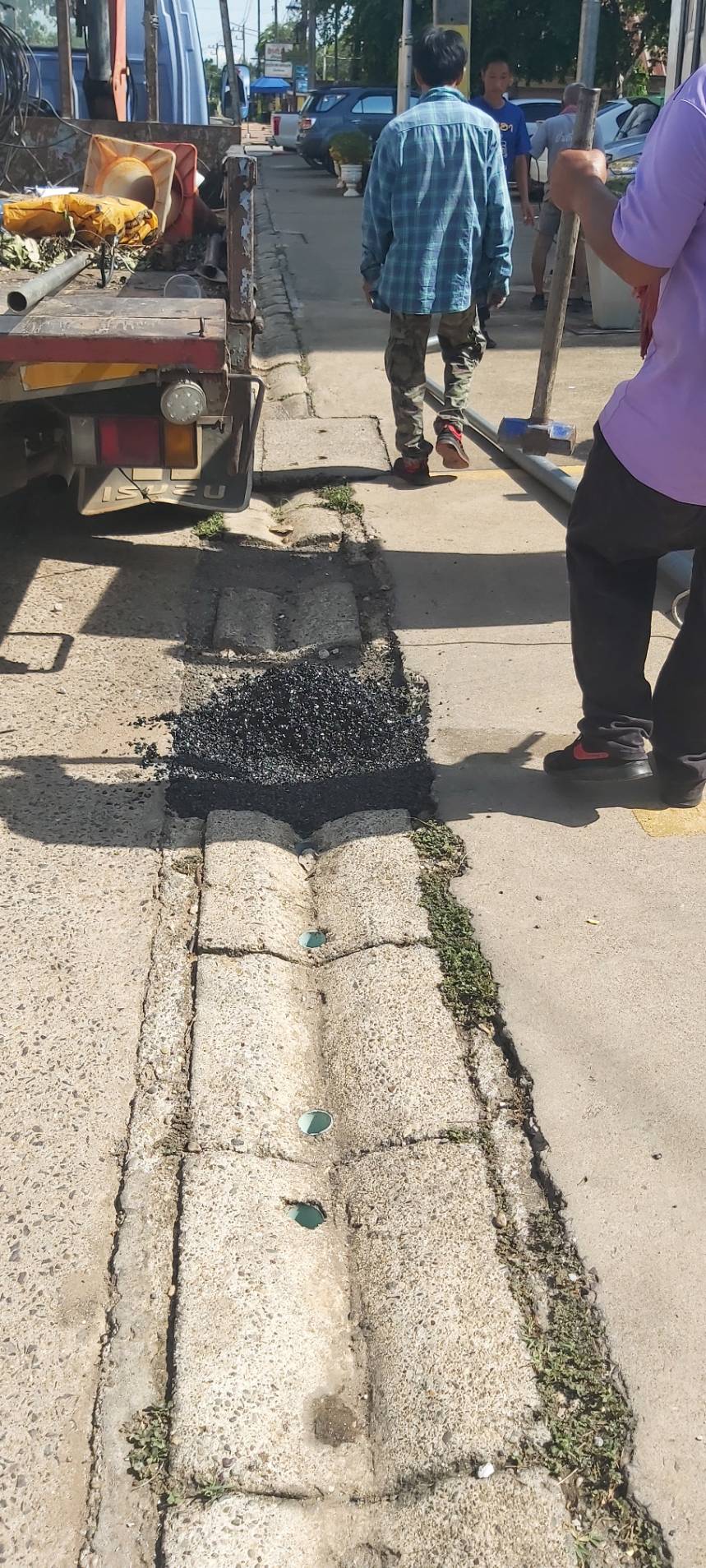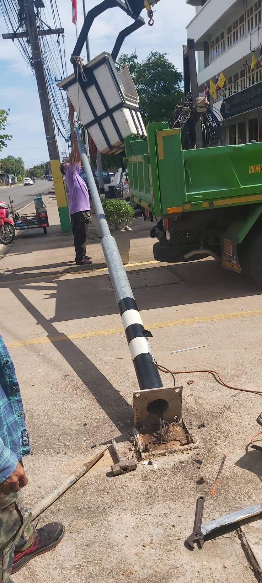 ย้ายเสาไฟฟ้าโซเดียม และซ่อมแซมทางระบายน้ำ บริเวณหน้าสถานีตำรวจภูธรลับแล (ทางเข้าที่ว่าการอำเภอลับแล)