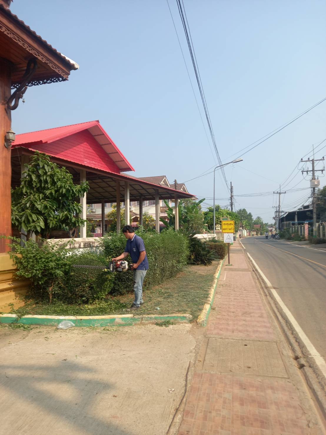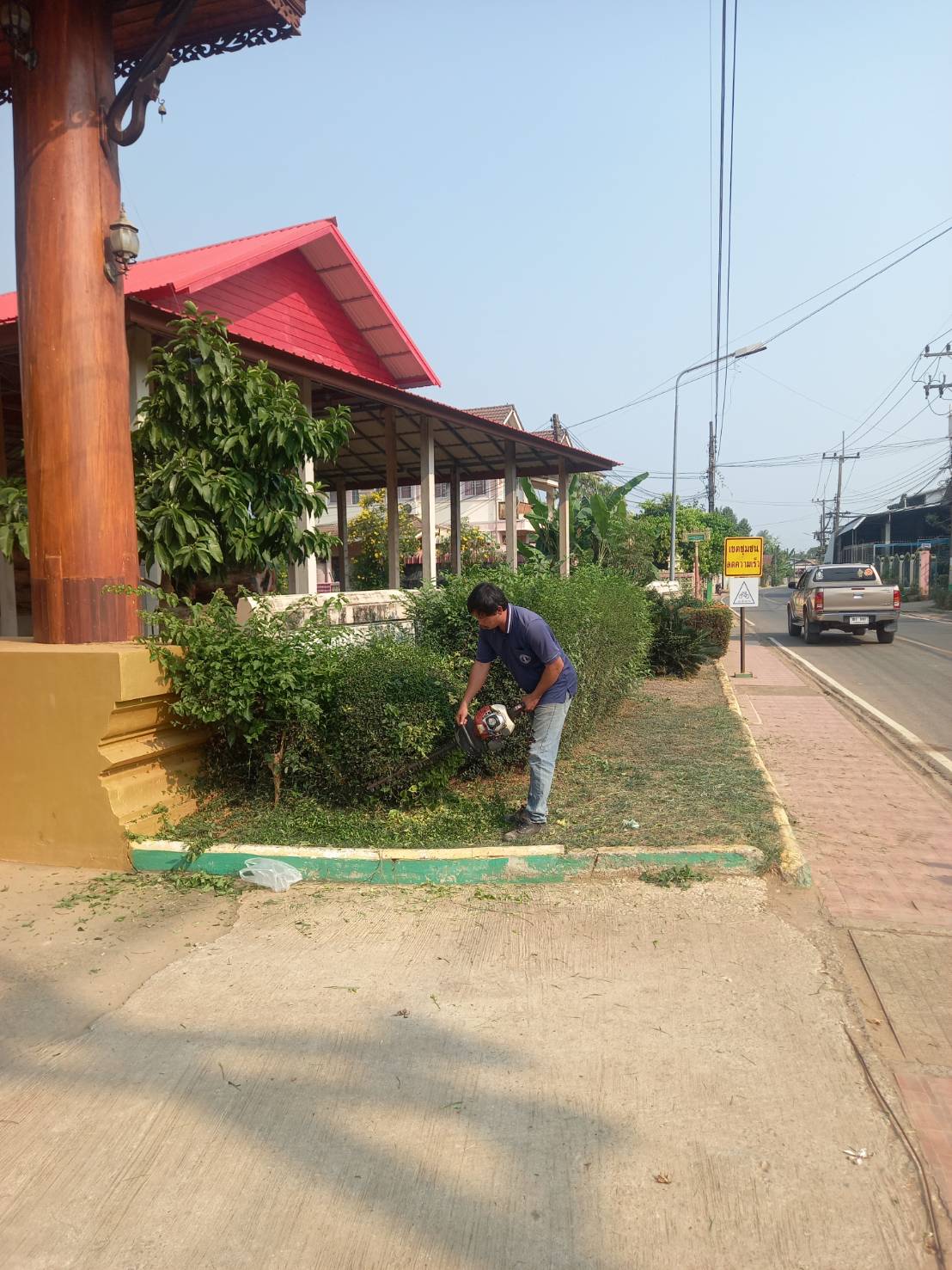 ตัดหญ้า ตกแต่งสวนหย่อม บริเวณหน้าวัดไชย์จุมพล