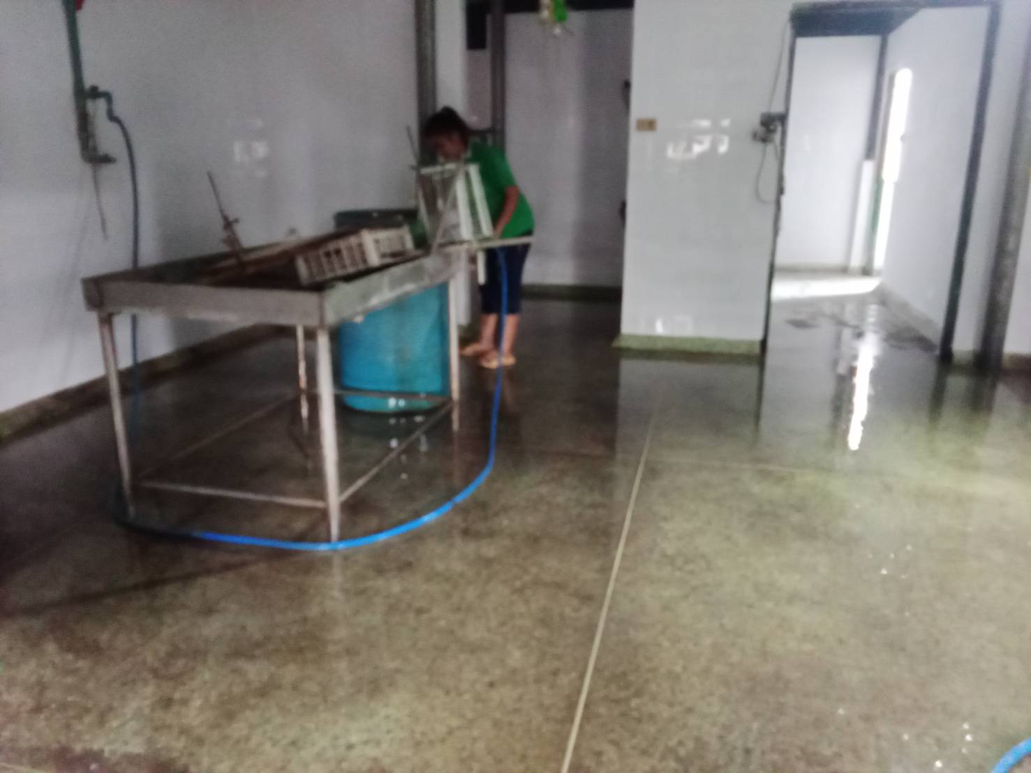 กองสาธารณสุขและสิ่งแวดล้อม ดำเนินการทำความสะอาดโรงฆ่าสัตว์เทศบาลตำบลศรีพนมมาศ