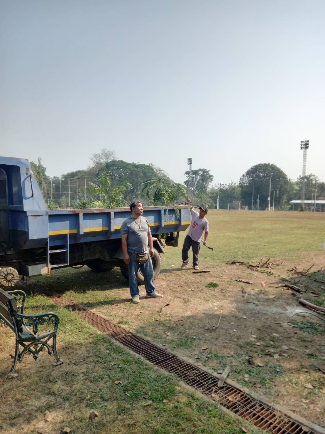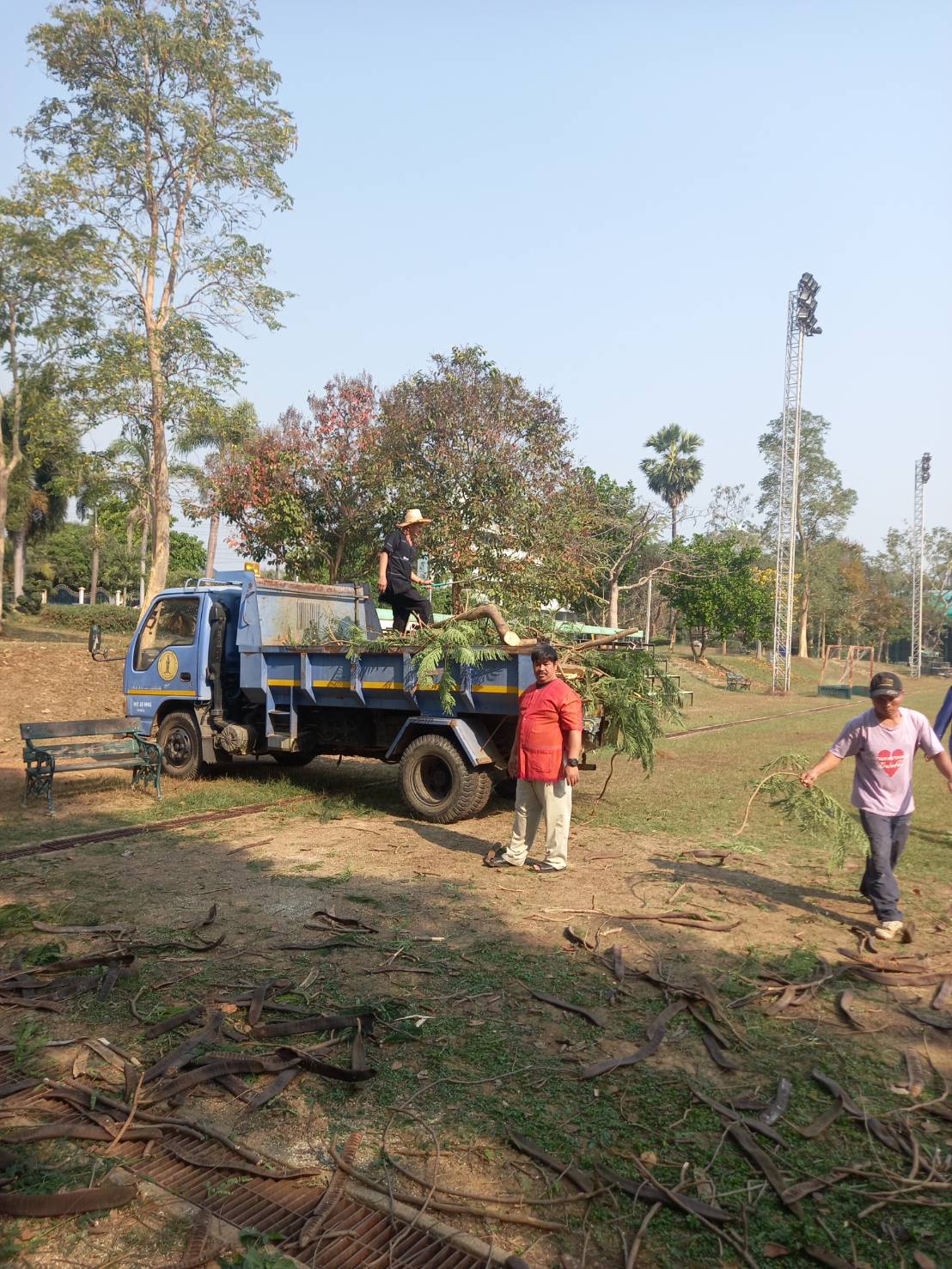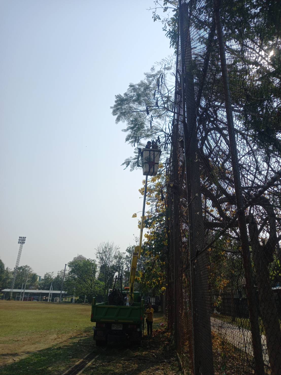 ตัดแต่งกิ่งไม้ บริเวณสนามกีฬาเทศบาลตำบลศรีพนมมาศ
