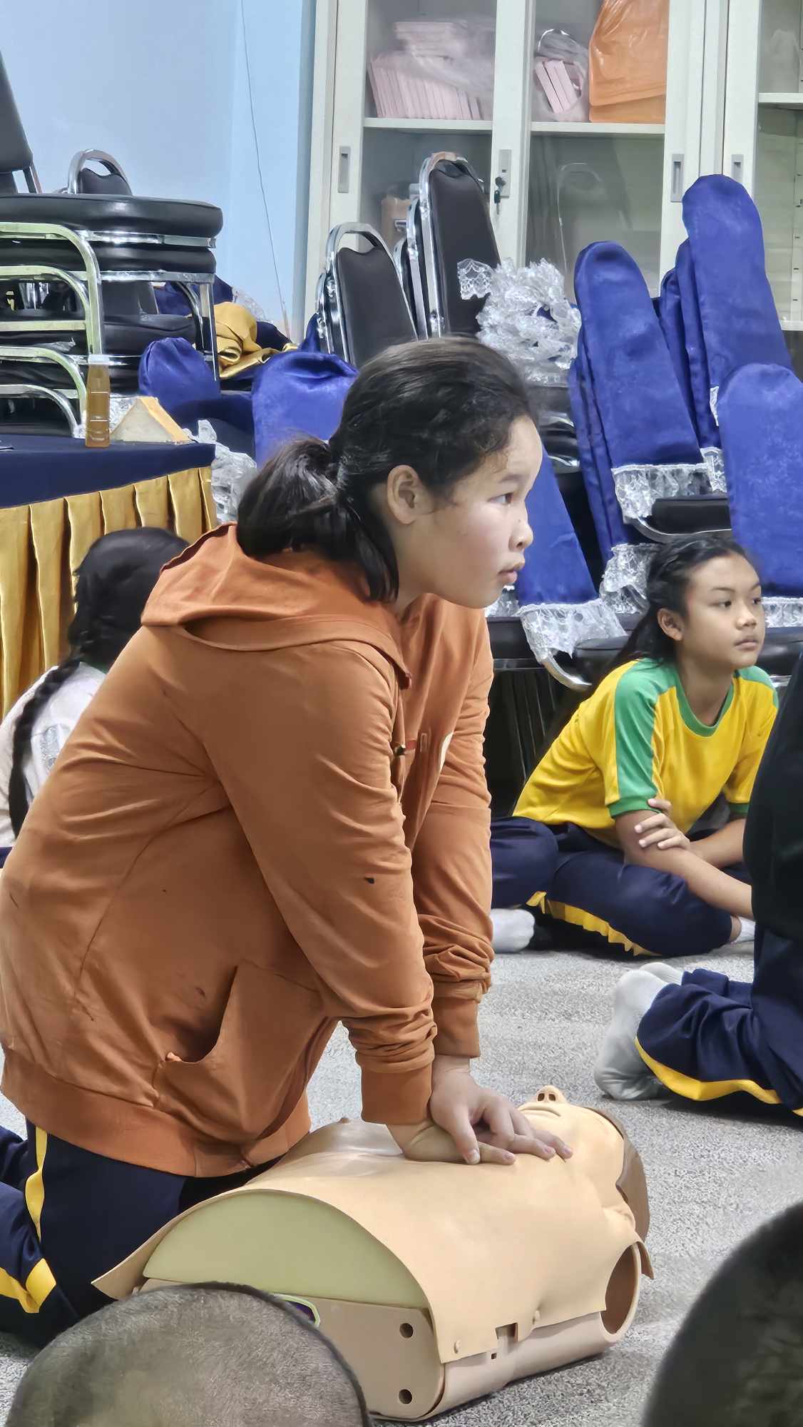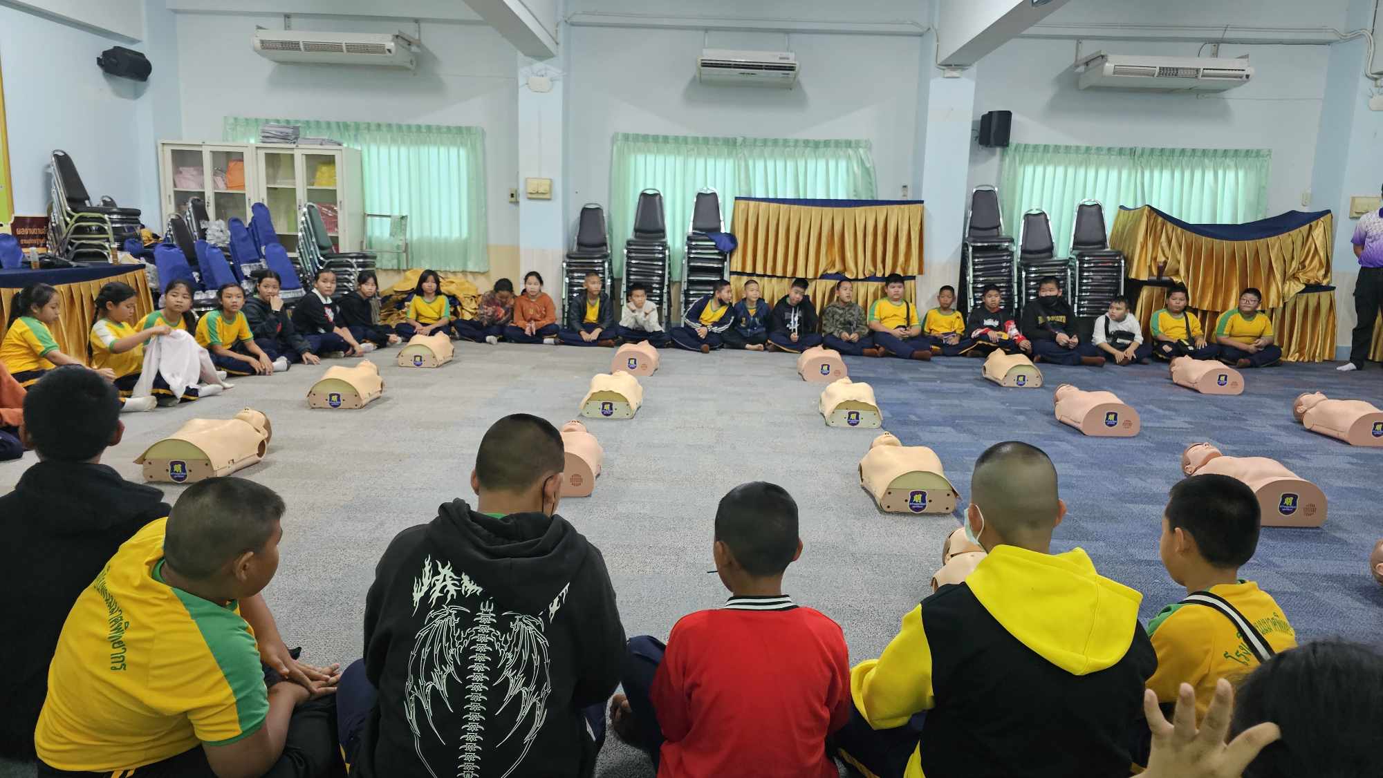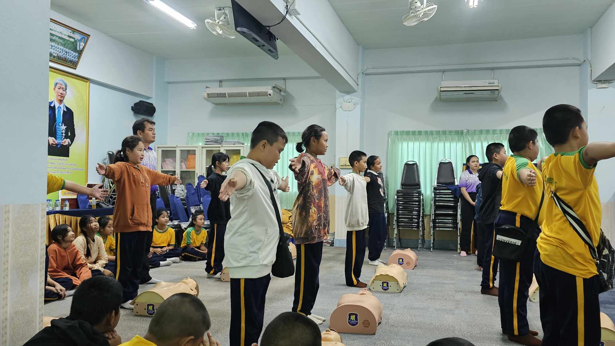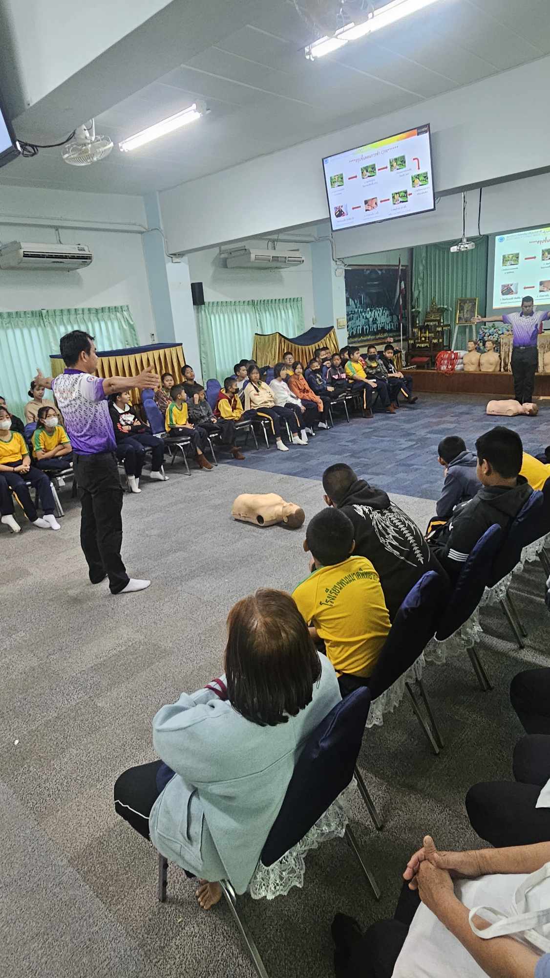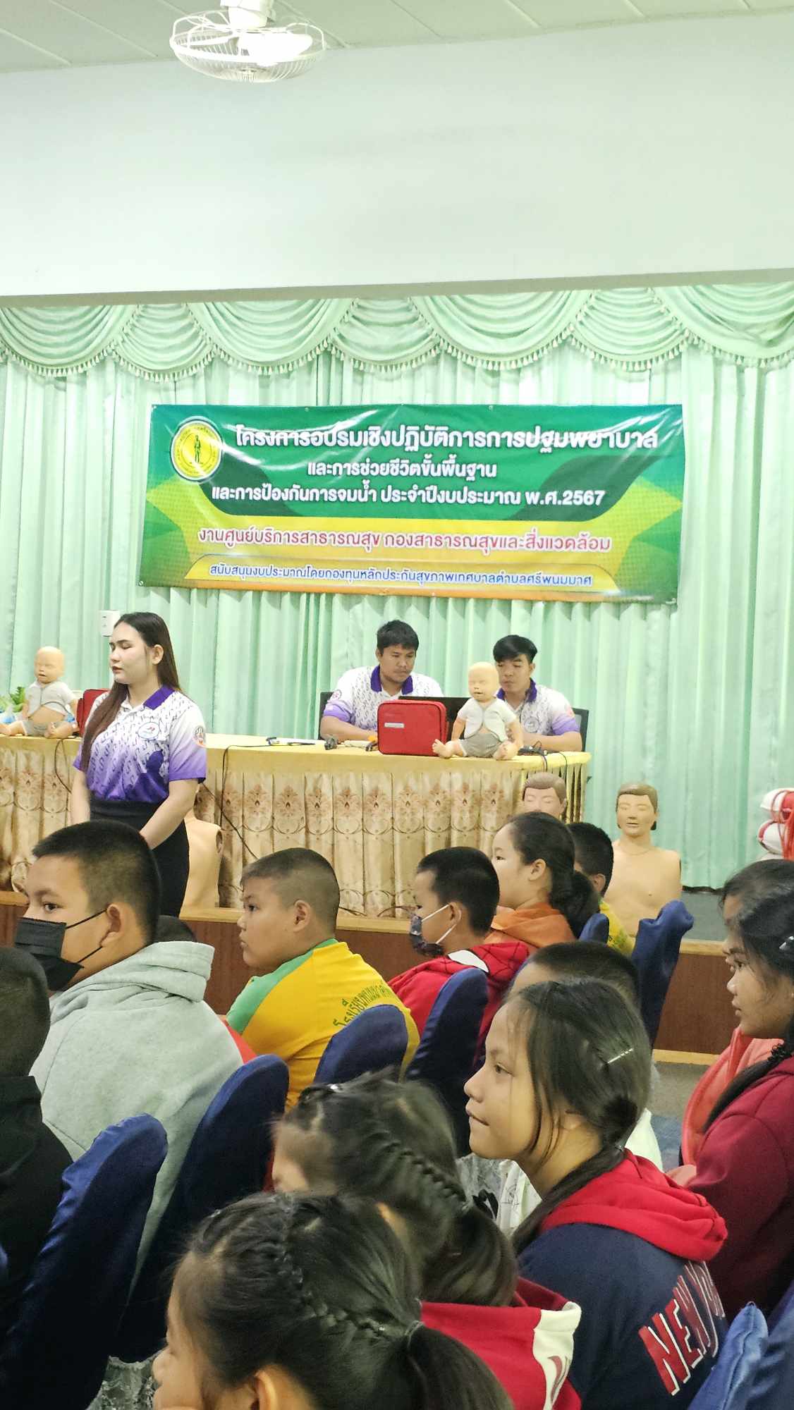 นักเรียนระดับชั้นประถมศึกษาปีที่ 5 โรงเรียนพนมมาศพิทยากร จำนวน 53 คน เข้ารับการอบรมเชิงปฏิบัติการการปฐมพยาบาลและช่วยชีวิตขั้นพื้นฐานและการป้องกันการจมน้ำ ซึ่งจัดโดยกองสาธารณสุขและสิ่งแวดล้อม เทศบาลตำบลศรีพนมมาศ ณ ห้องมณีวรรณ โรงเรียนพนมมาศพิทยากร เพื่อให้นักเรียนสามารถนำความรู้ที่ได้ไปใช้ในสถานกรณ์ฉุกเฉินได้อย่างมีประสิทธิภาพ