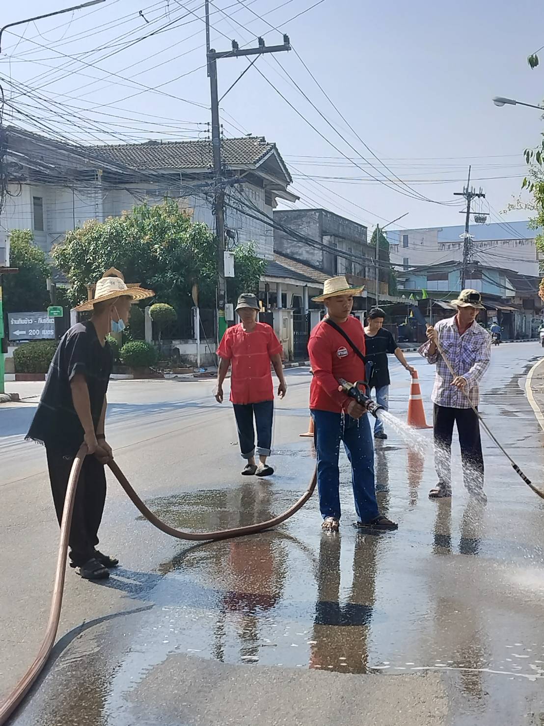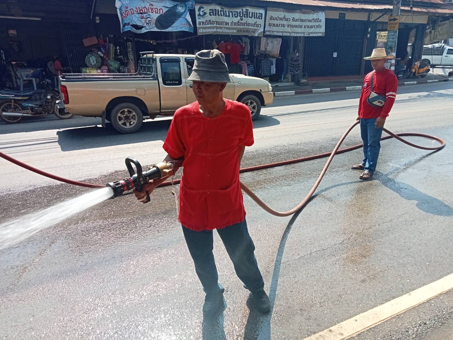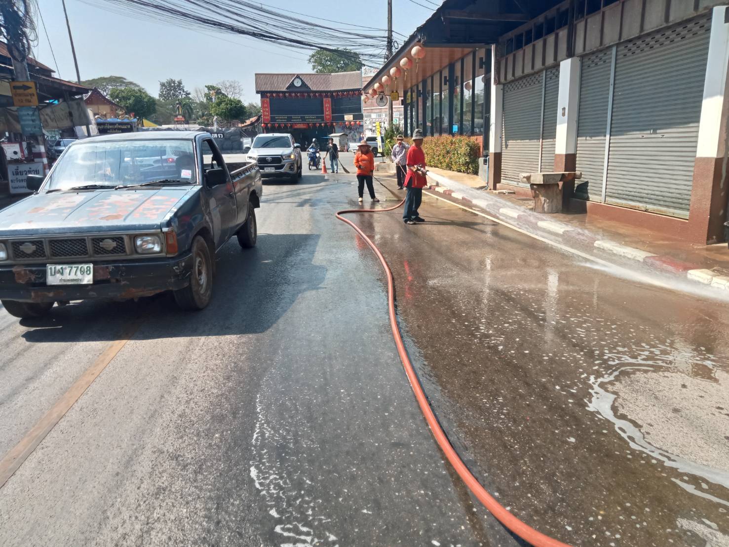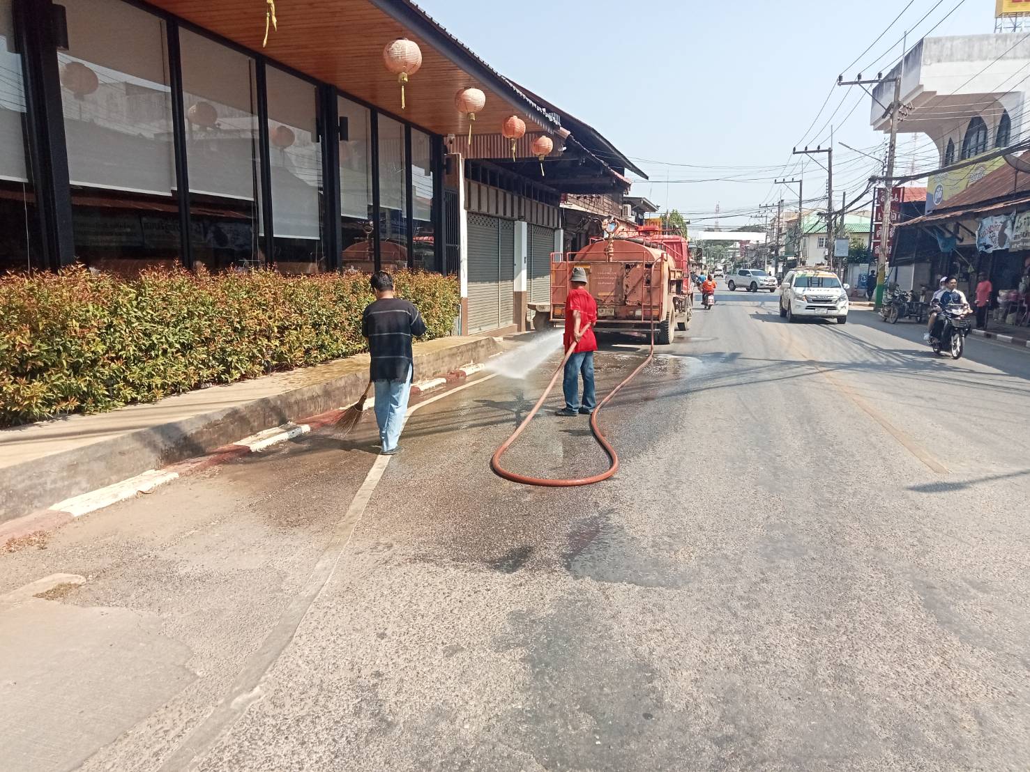 กองสาธารณสุขและสิ่งแวดล้อม ดำเนินการล้างถนน