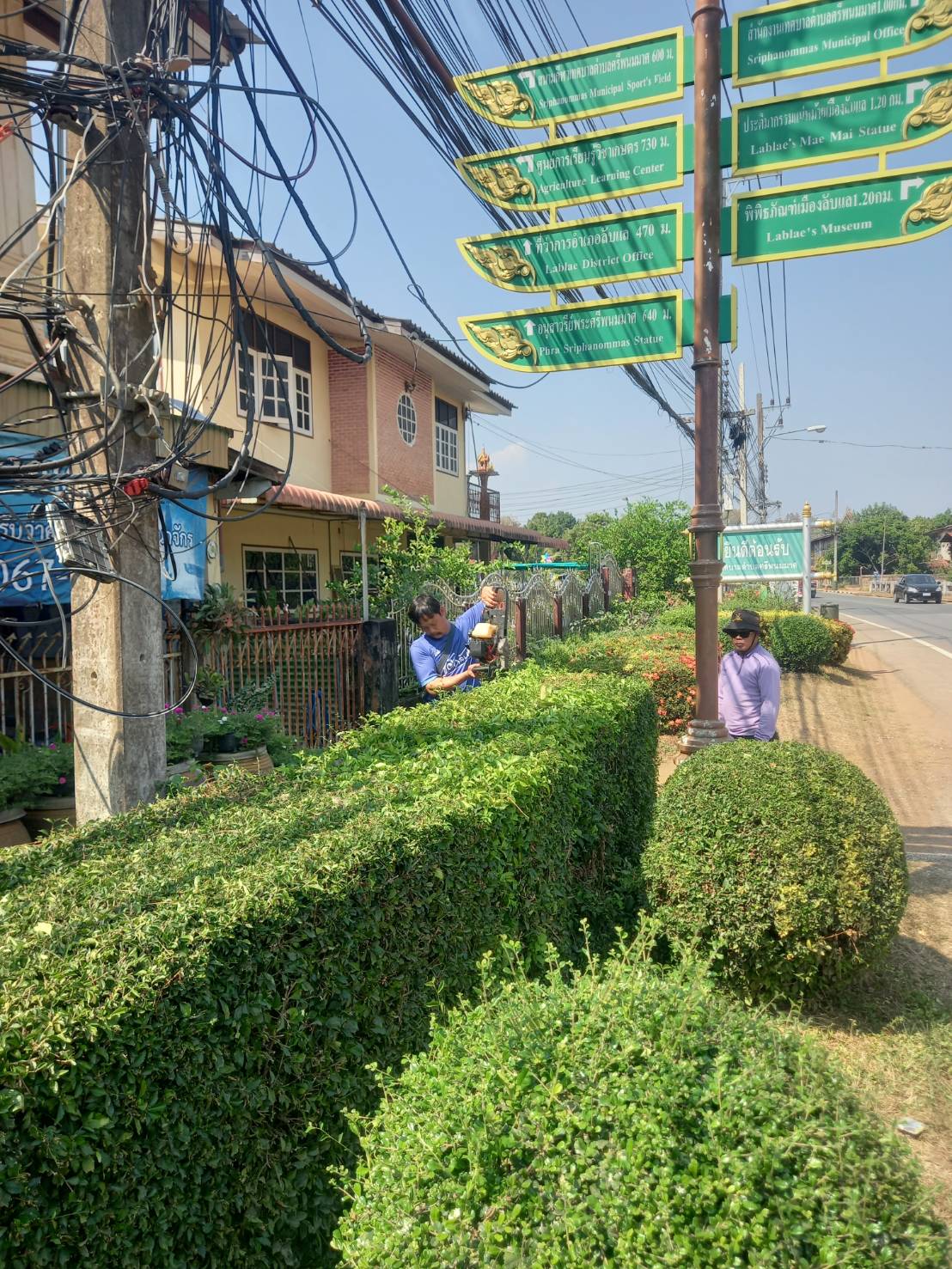 ตัดหญ้า ตกแต่งสวนหย่อม บริเวณหน้าวัดดอนไชย