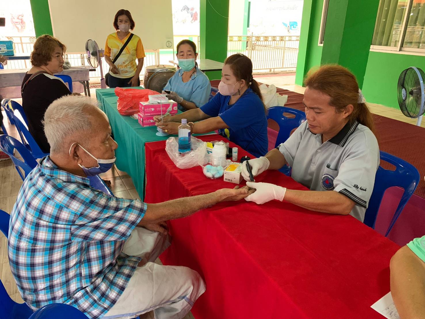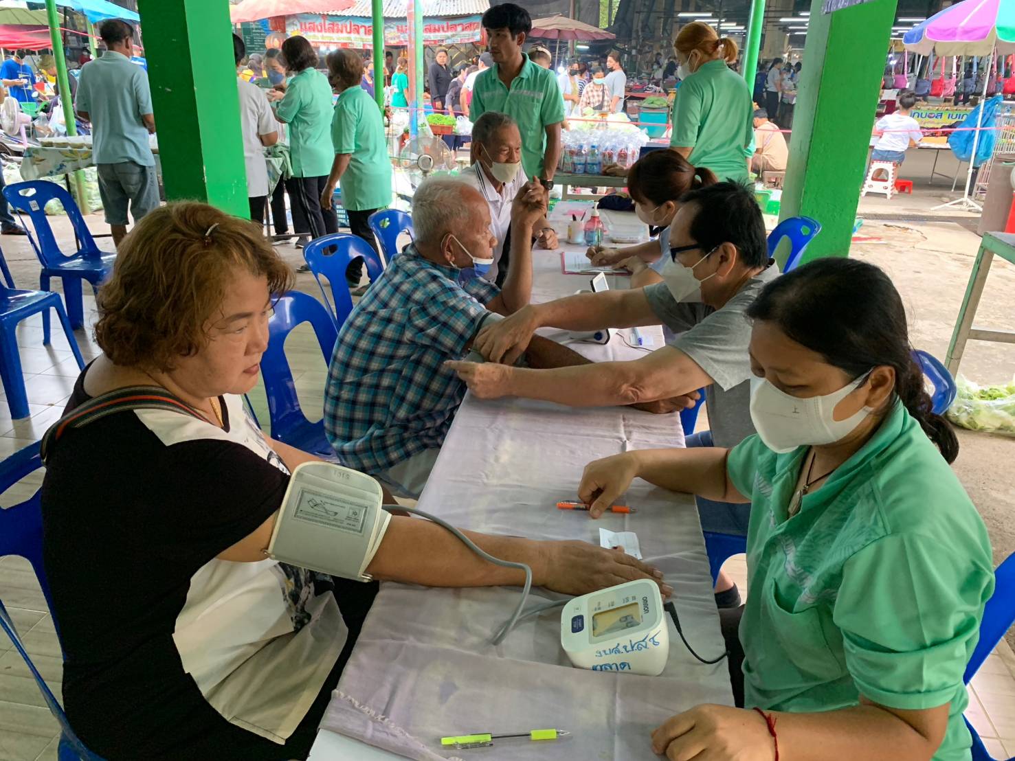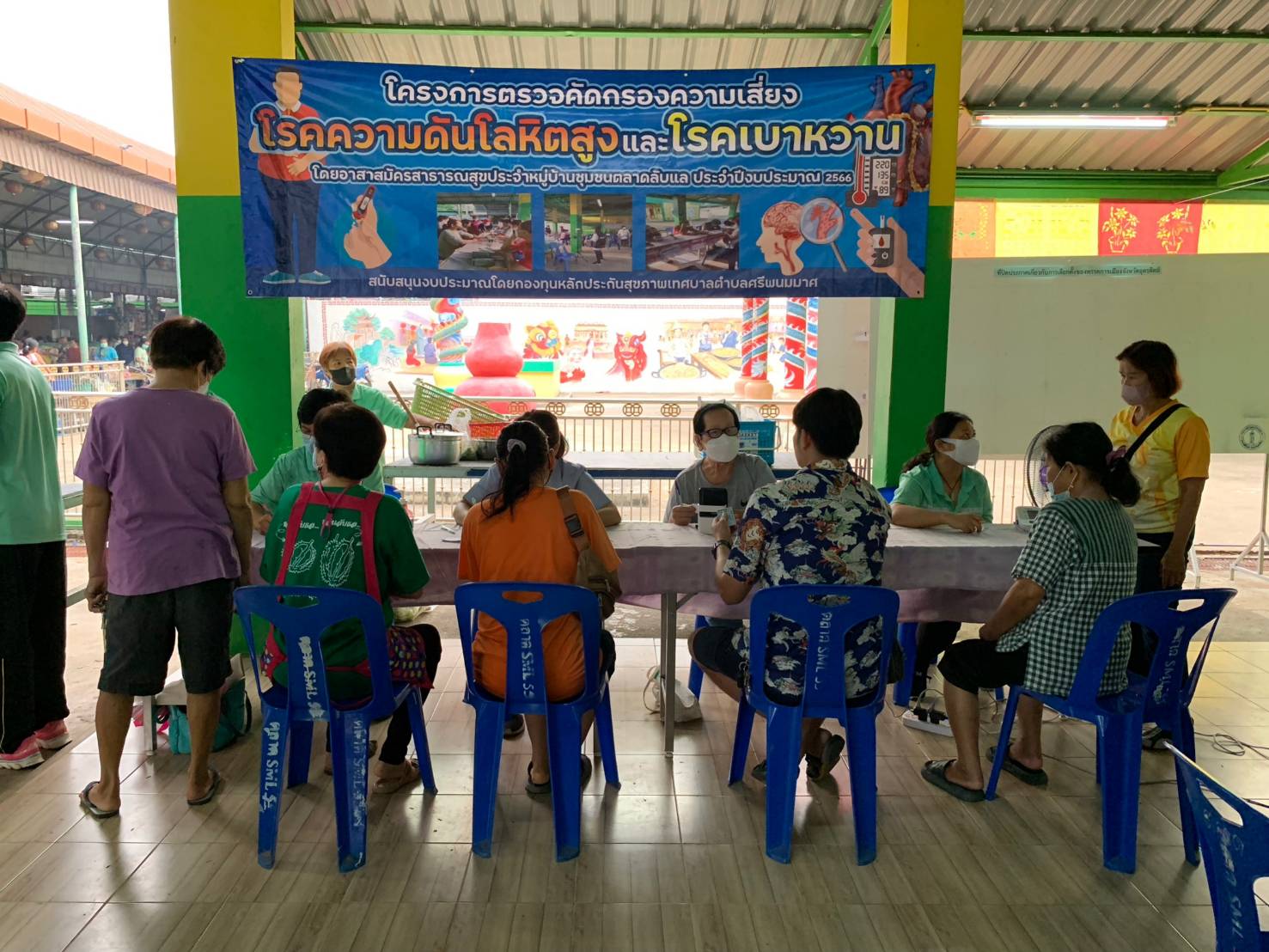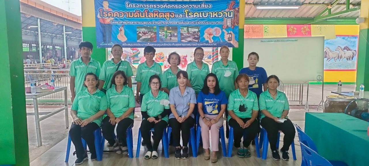 งานศูนย์บริการฯ ลงพื้นที่ร่วมกับอสม.ตลาดลับแล คัดกรองโรคเบาหวานและความดันโลหิตสูง ตามโครงการคัดกรองความเสี่ยงฯประจำปีงบประมาณ 2566 มีผู้เข้าร่วมโครงการจำนวน 77 คน
