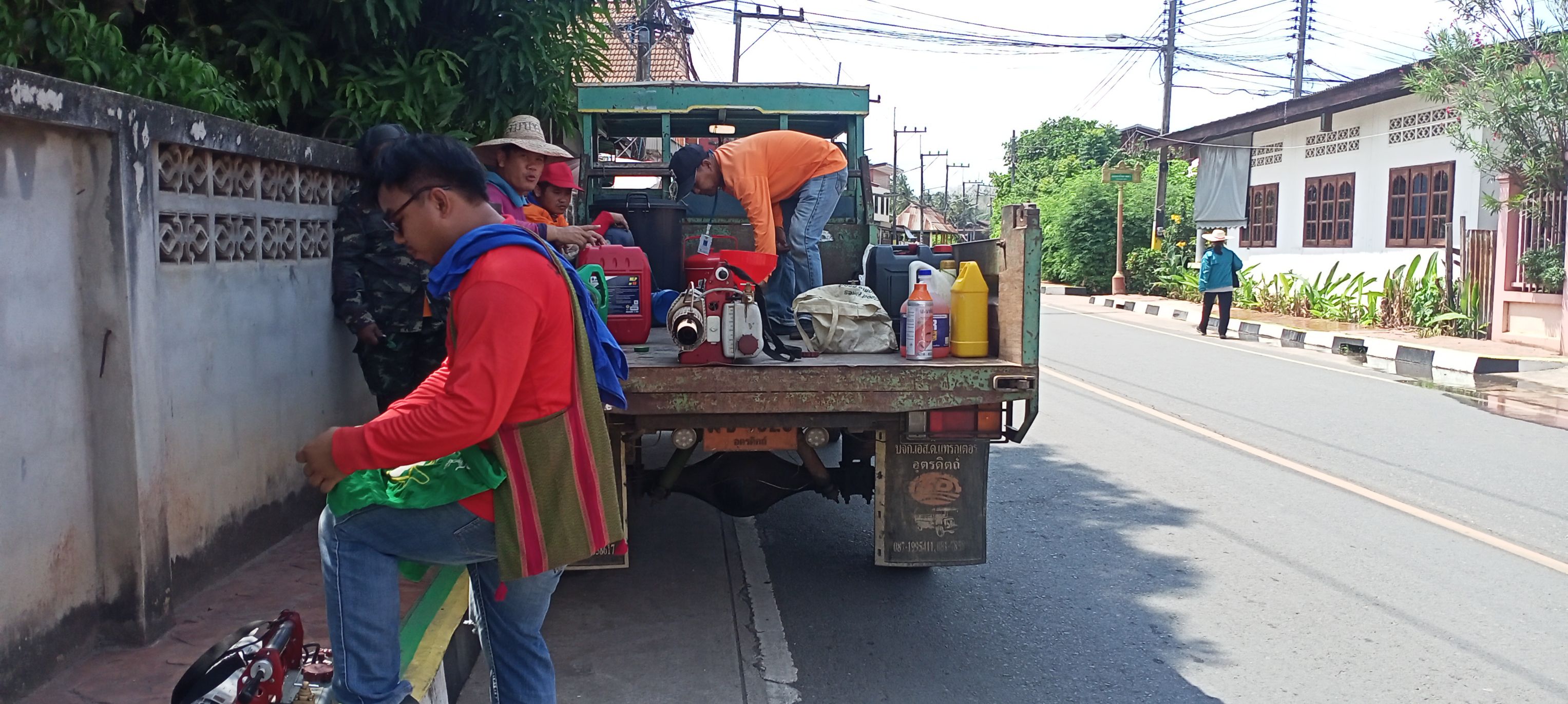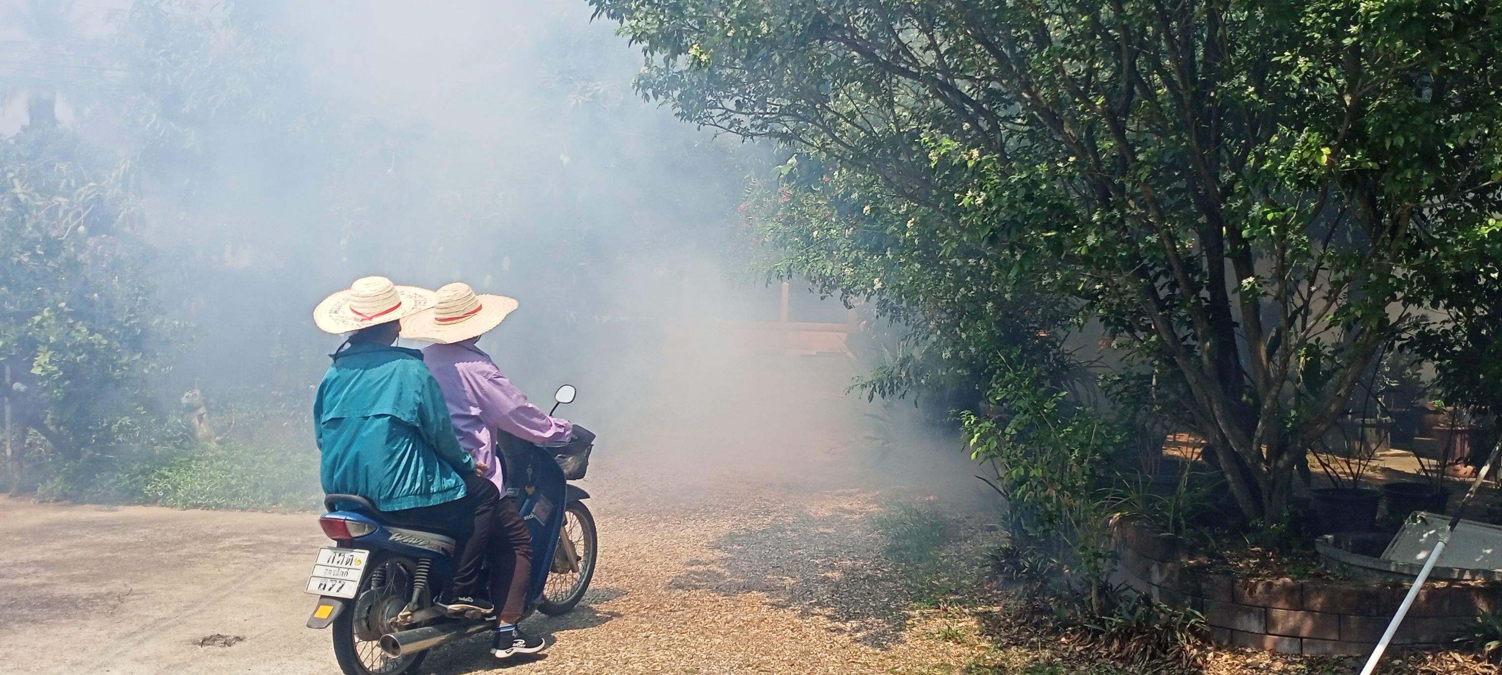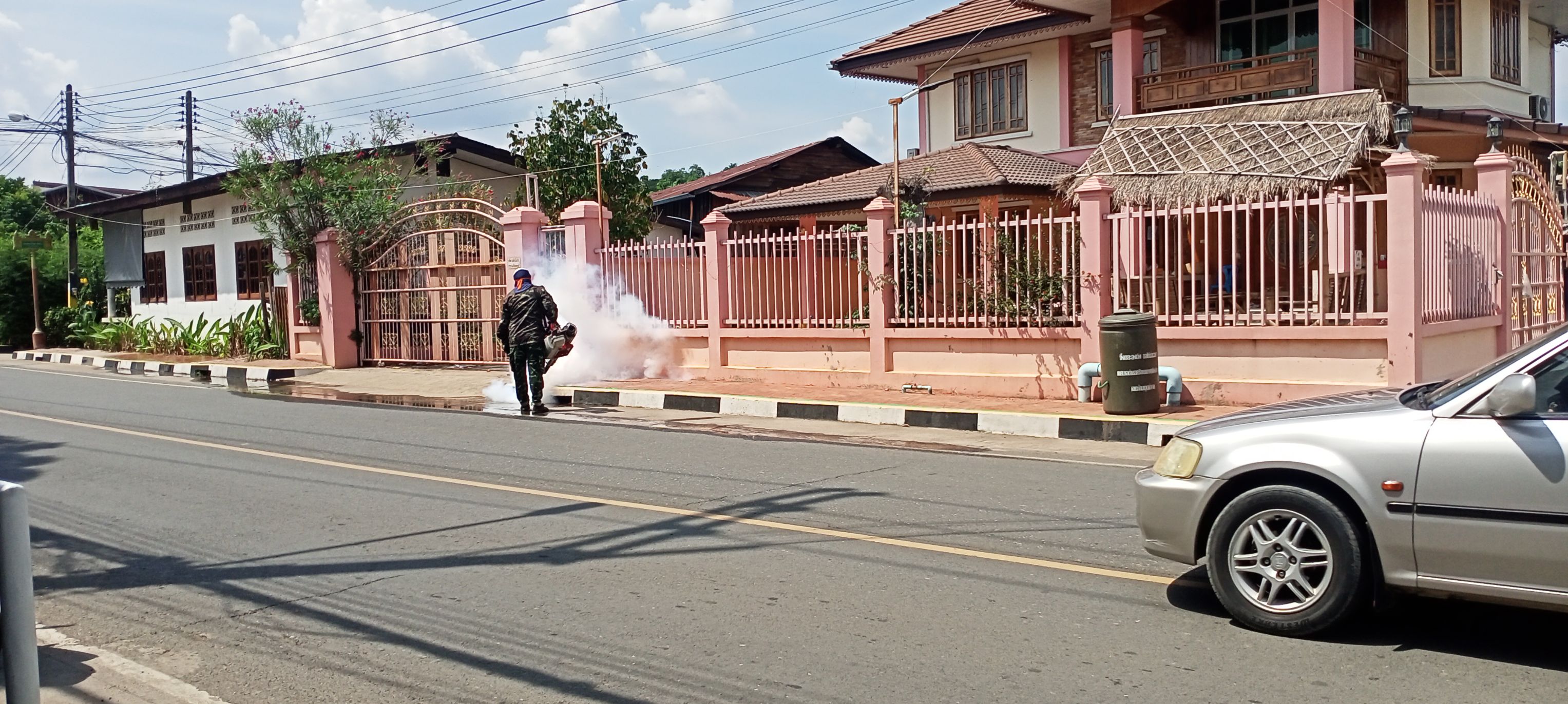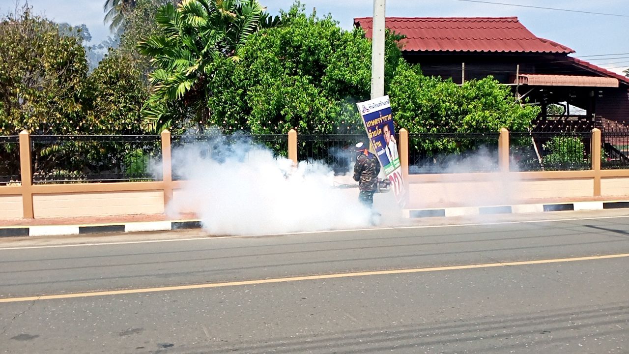 กองสาธารณสุขและสิ่งแวดล้อม ร่วมกับ อสม.ชุมชนคอกช้าง ดำเนินการพ่นหมอกควันกำจัดยุง