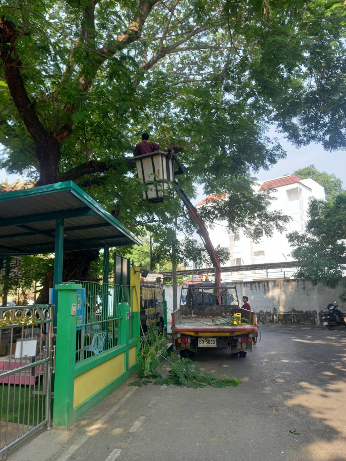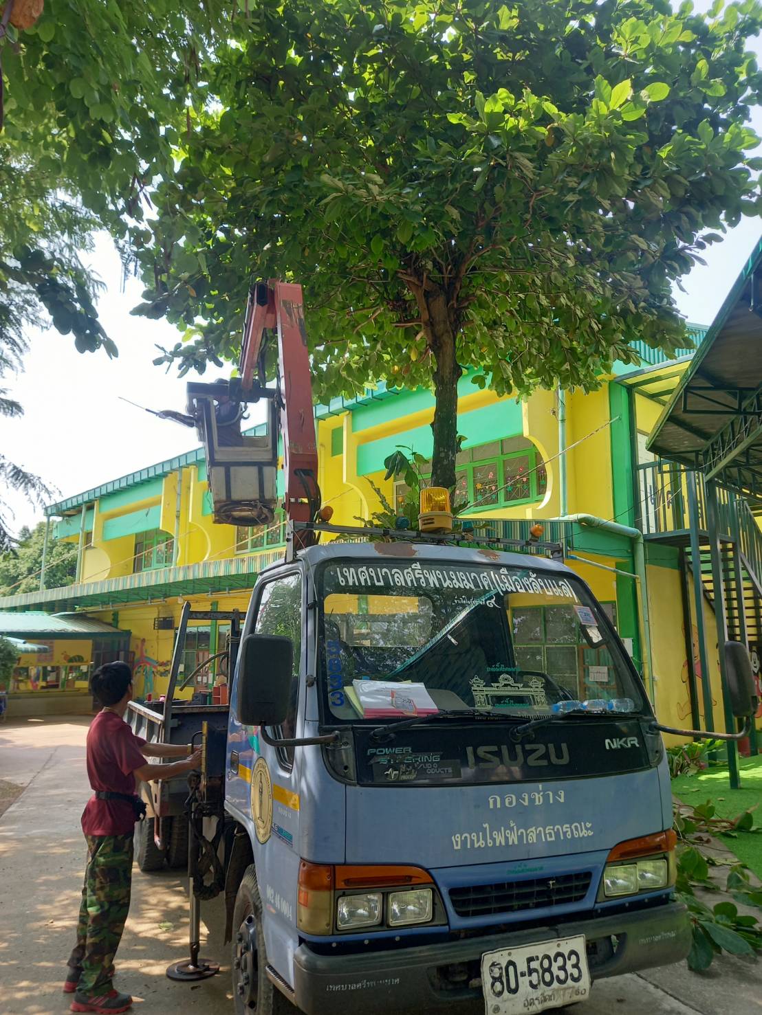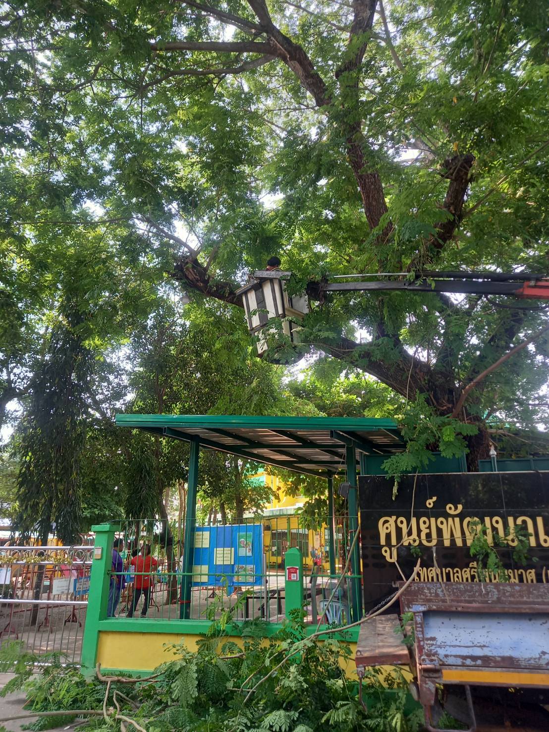 ตัดแต่งกิ่งไม้ บริเวณศูนย์พัฒนาเด็กเล็กเทศบาลตำบลศรีพนมมาศ เพื่อปรับภูมิทัศน์ให้สวยงาม น่าอยู่ และปลอดภัยสำหรับเด็กนักเรียน