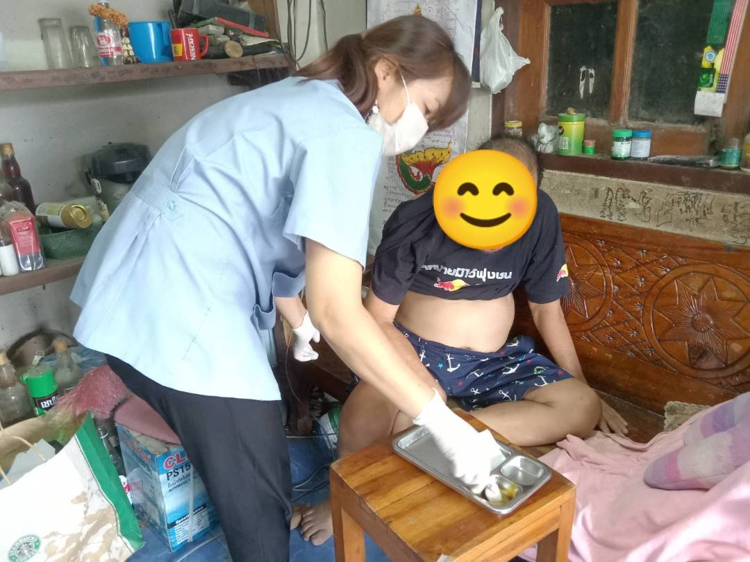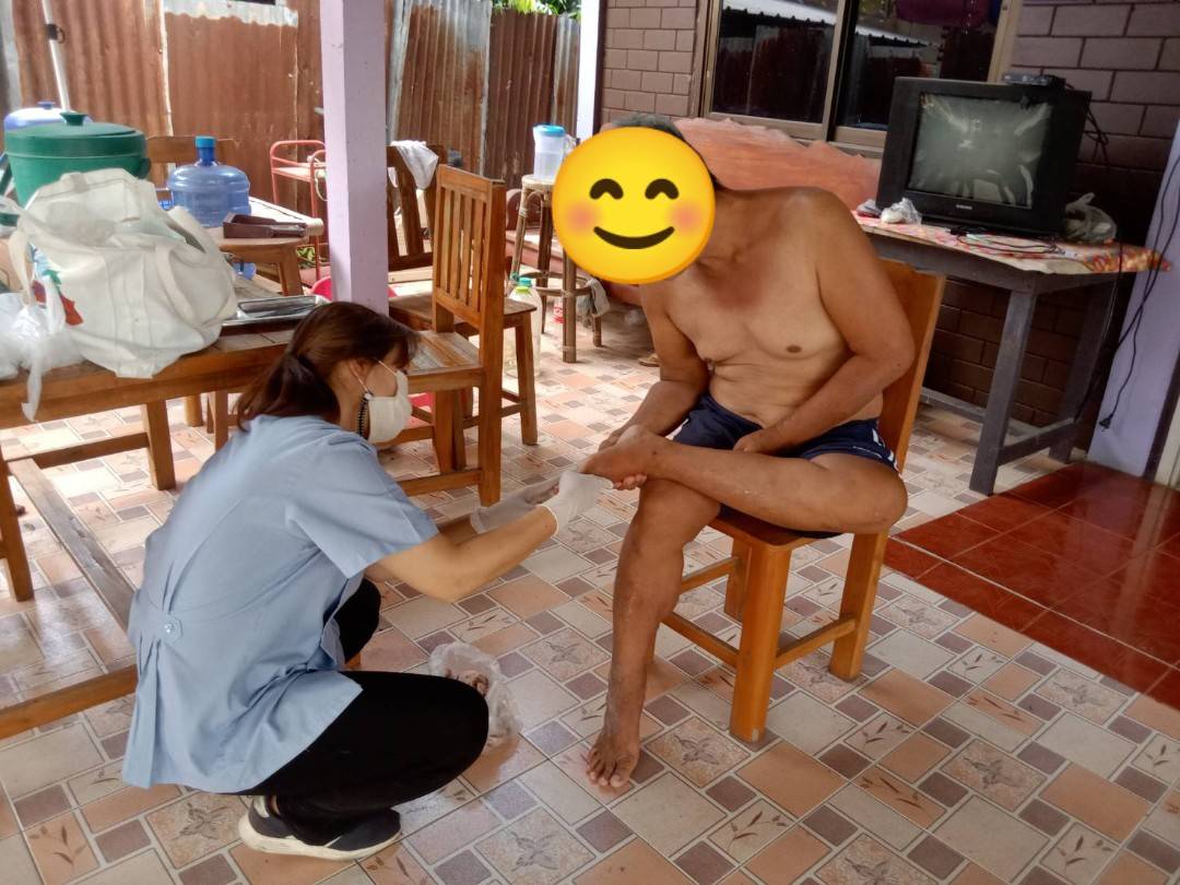 ศูนย์บริการสาธารณสุข ลงพื้นที่ให้บริการทำแผลให้ผู้พิการในเขตเทศบาลศรีพนมมาศ