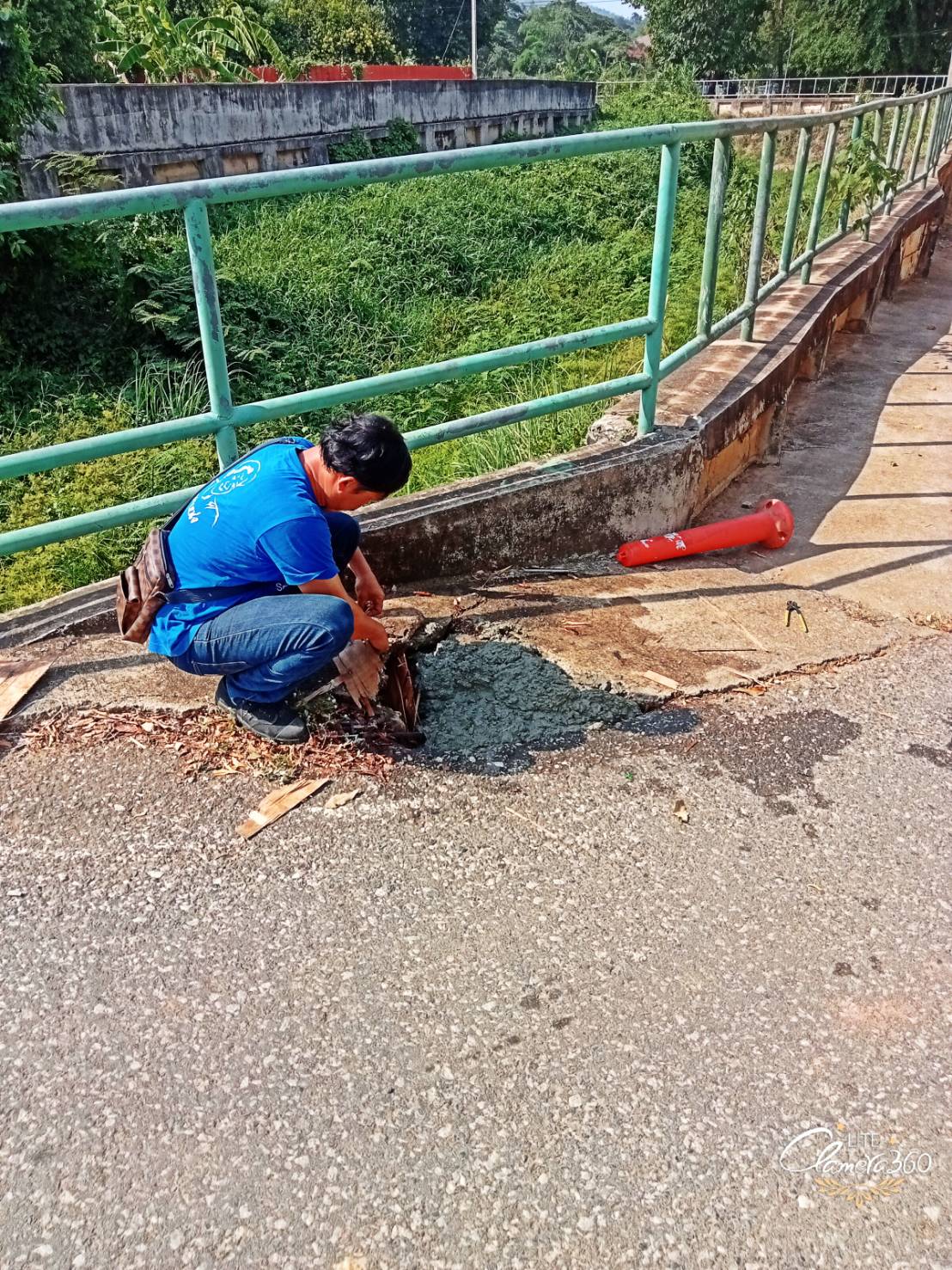ซ่อมแซมผิวจราจรที่ชำรุด บริเวณสะพานหน้าวัดป่ายาง