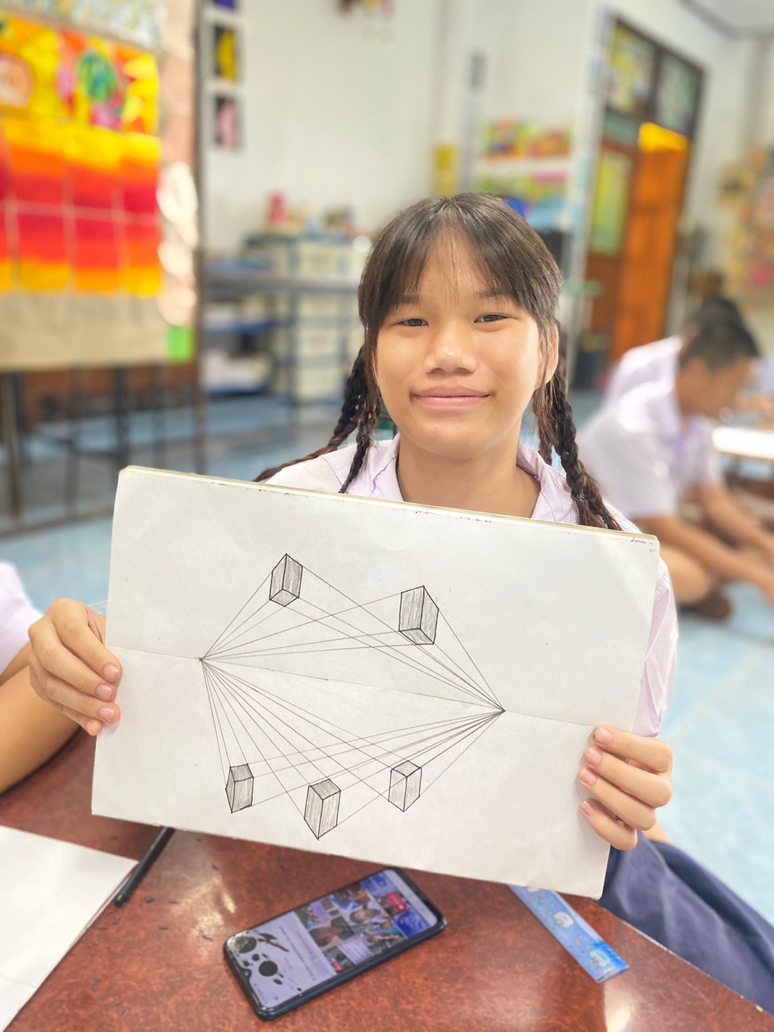 ผลงานชิ้นนี้จึงทำให้นักเรียนเกิดทักษะและแสวงหาการวาดทัศนียภาพใหม่ๆ เพื่อรับรู้ทางอารมณ์และความรู้สึก
