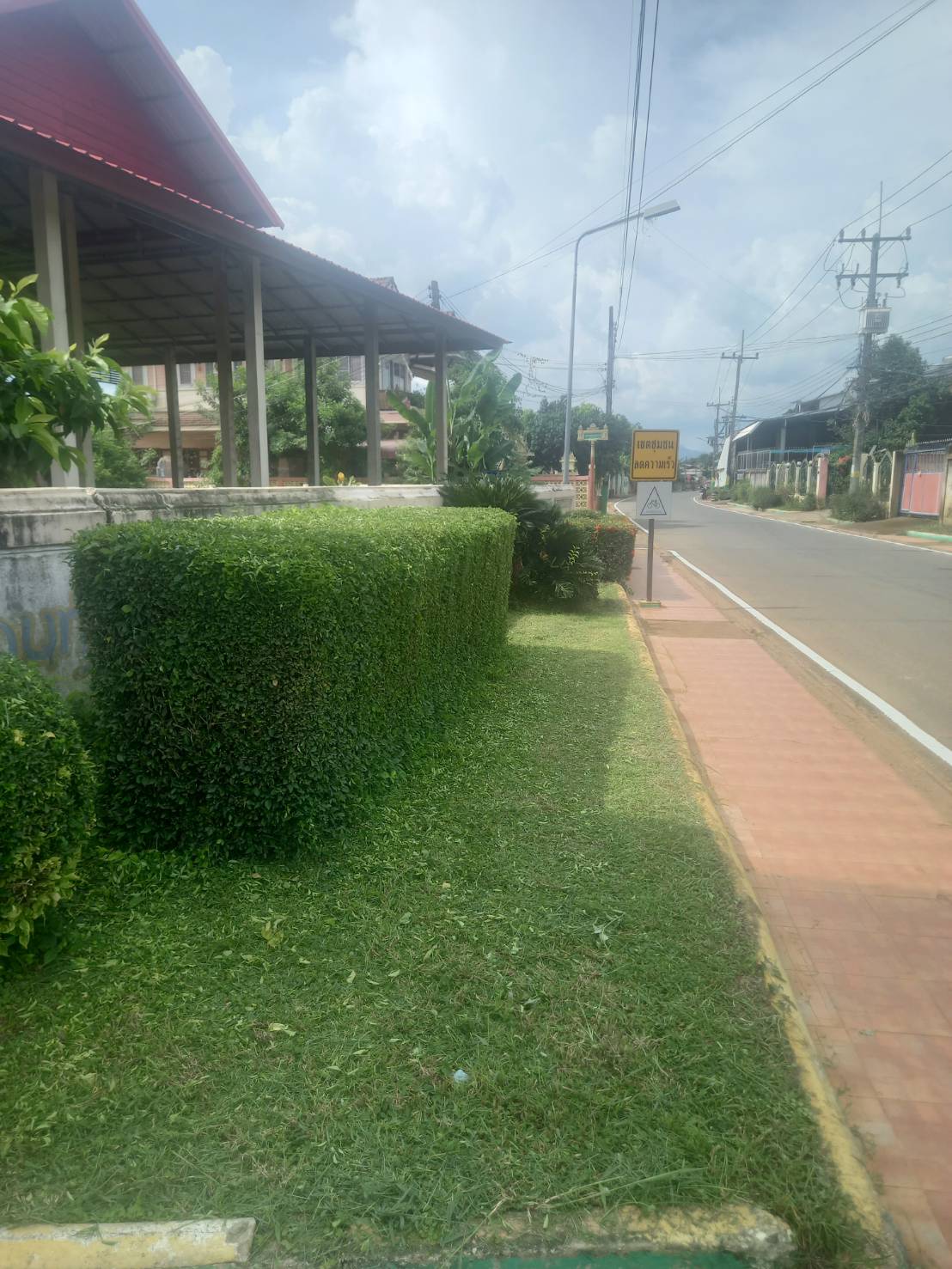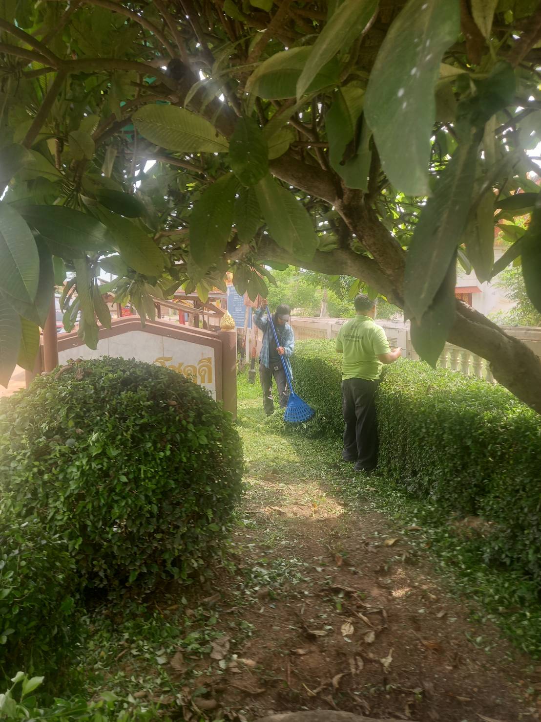 ตัดหญ้า ตกแต่งสวนหย่อม บริเวณหน้าวัดชัยจุมพล