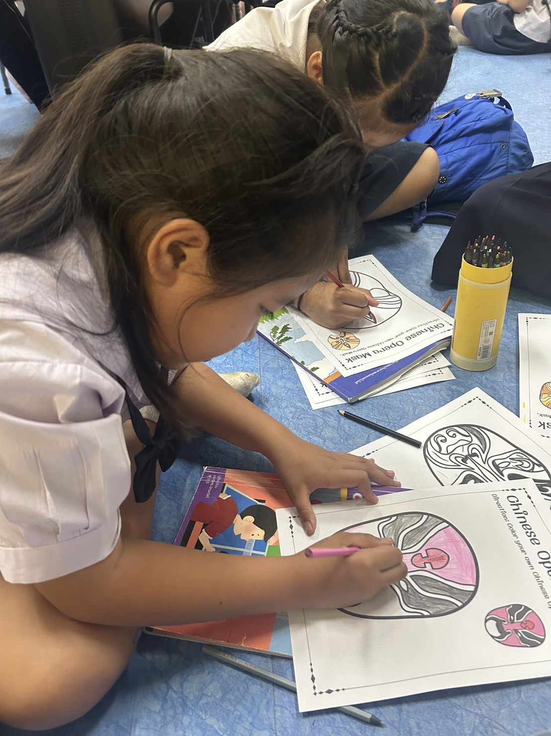 การวาดหน้ากากงิ้วปักกิ่ง เริ่มจากการวาดลวดลายบนใบหน้าตามตัวอย่างที่ต้องการ และการลงสีจะเน้นที่สีหลักของหน้ากาก ในหน้ากากหนึ่งๆ สามารถมีสีอื่นผสมผสานอยู่ด้วยกัน ก็จะแสดงให้เห็นถึงลักษณะนิสัยว่าเป็นคนอย่างไรบ้าง แต่จะมีสีหลักๆ ที่แสดงถึงจุดเด่นของตัวแสดง