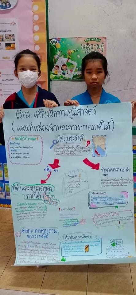 รายวิชาสังคมศึกษา ระดับชั้นประถมศึกษาปีที่ 6 โรงเรียนพนมมาศพิทยากร จัดการเรียนรู้โดยใช้โครงงานเป็นฐาน ซึ่งเป็นการเรียนที่นักเรียนได้ศึกษาค้นคว้าด้วยตนเอง ได้ลงมือปฏิบัติในเรื่องเครื่องมือทางภูมิศาสตร์ การใช้แผนที่ศึกษาลักษณะทางกายภาพของภาคต่างๆของประเทศไทย รวมถึงส่วนประกอบต่างๆที่ปรากฎอยู่บนพื้นผิว ลักษณะภูมิประเทศที่สำคัญ เช่น ภูเขาสูง ภูเขา ที่ราบ ที่ราบสูง เกาะ ฯลฯ ซึ่งนักเรียนเกิดทักษะการทำงานร่วมกัน รู้จักแก้ไขปัญหา เกิดความรักความสามัคคีในกลุ่ม ยอมรับฟังความคิดเห็นของผู้อื่น ซึ่งจะเป็นพื้นฐานในการทำงานร่วมกับผู้อื่นในอนาคตได้เป็นอย่างดี
