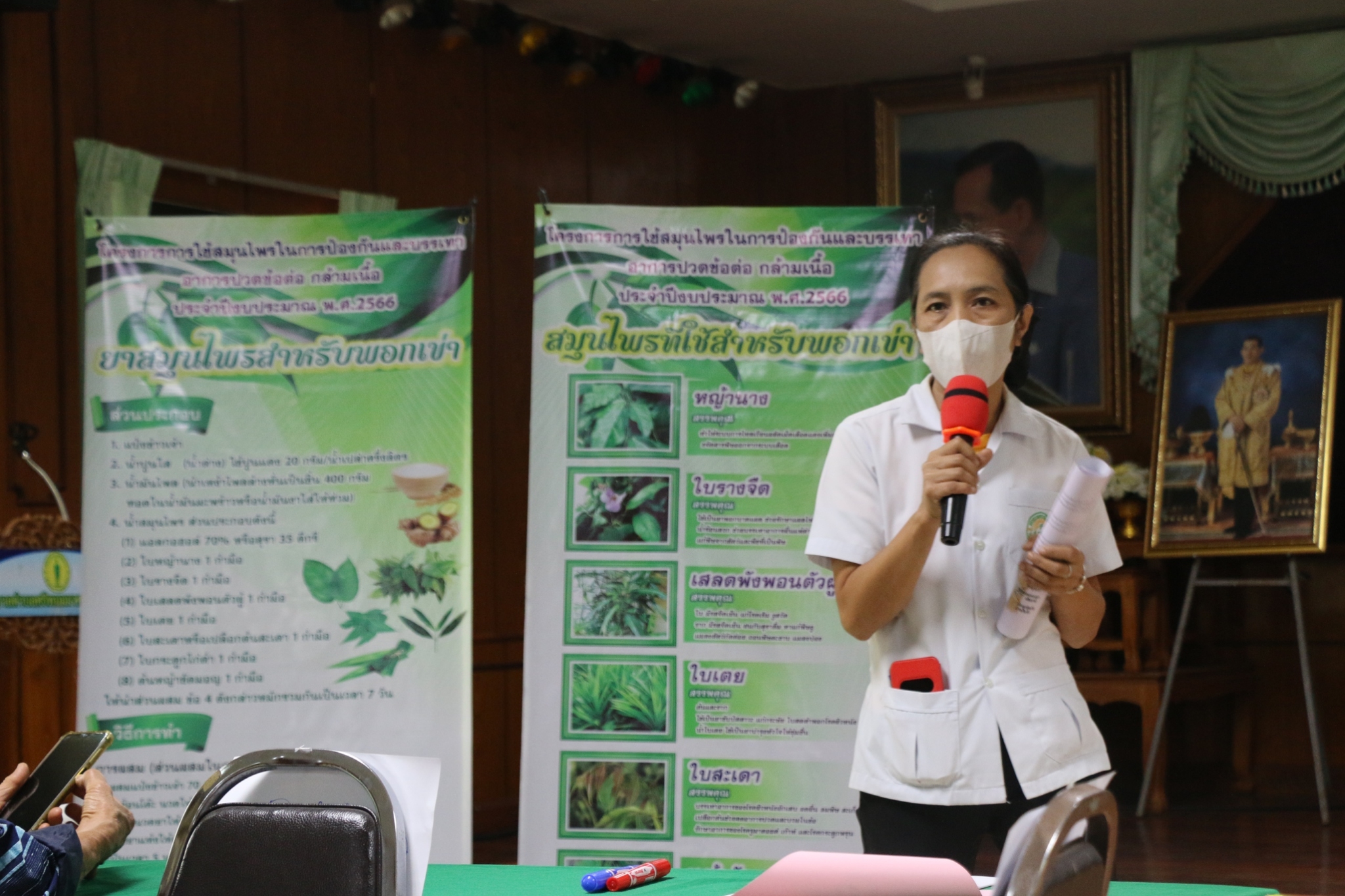 ตามโครงการใช้สมุนไพรในการป้องกันและบรรเทาอาการปวดข้อต่อกล้ามเนื้อ ประจำปีงบประมาณ พ.ศ. 2566