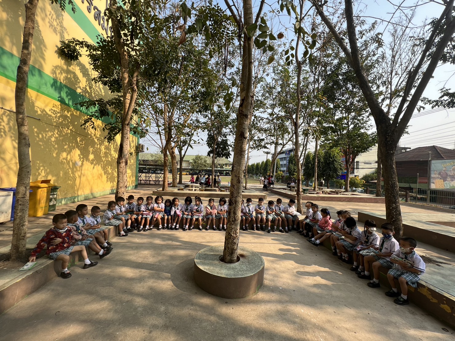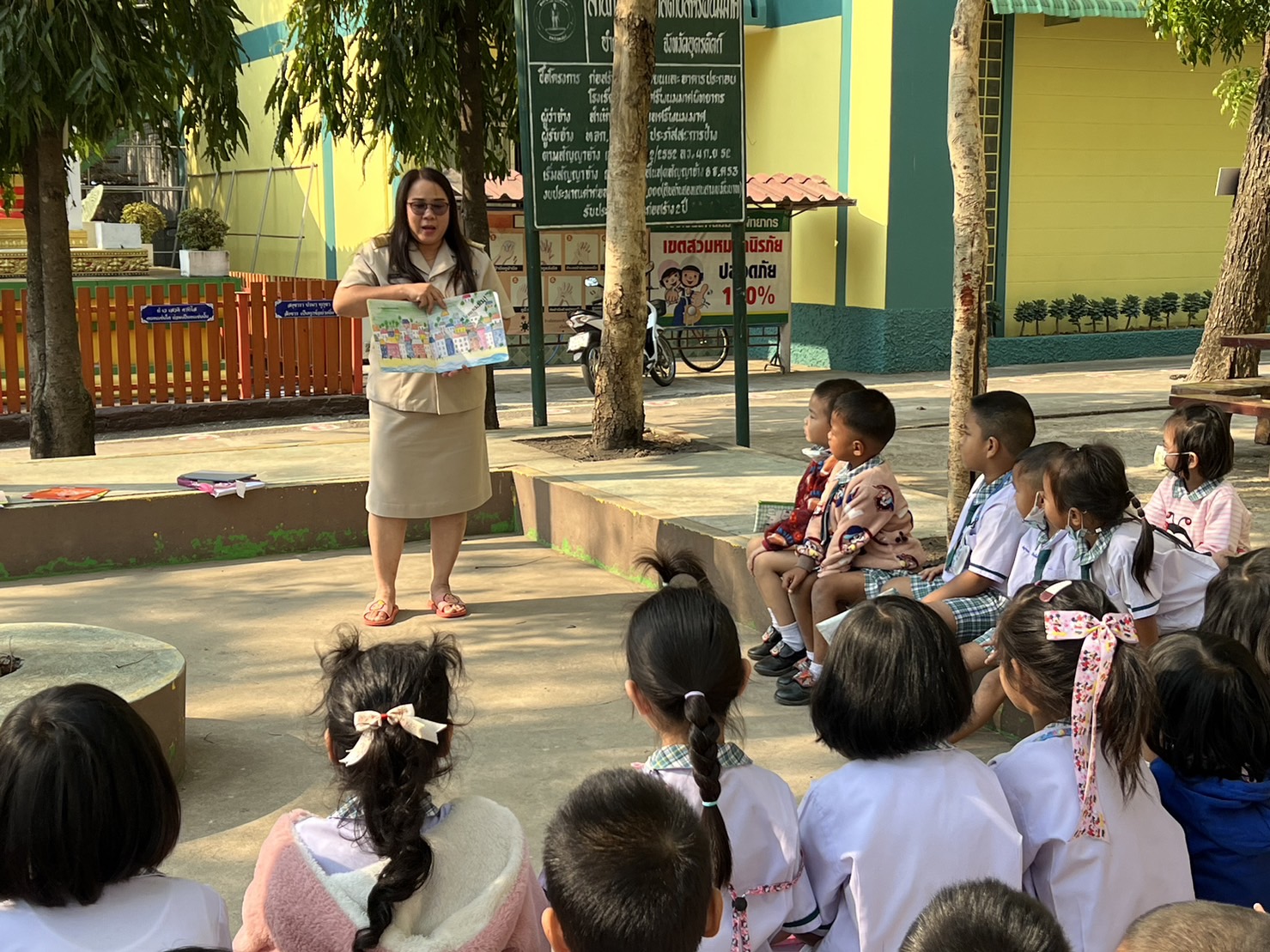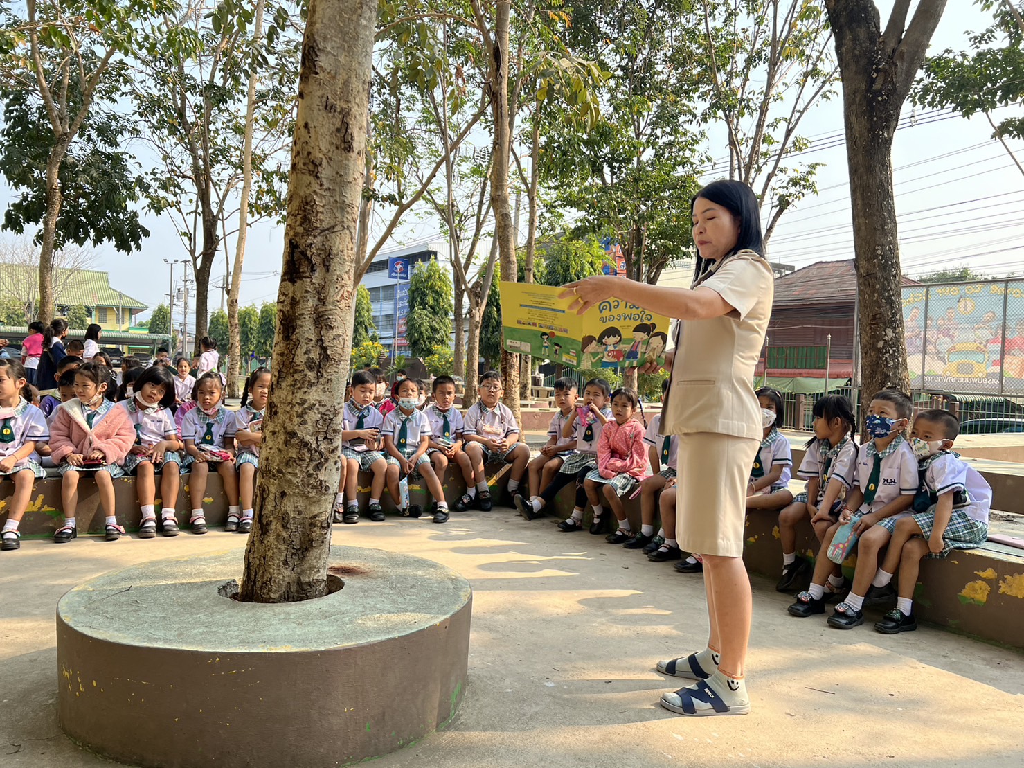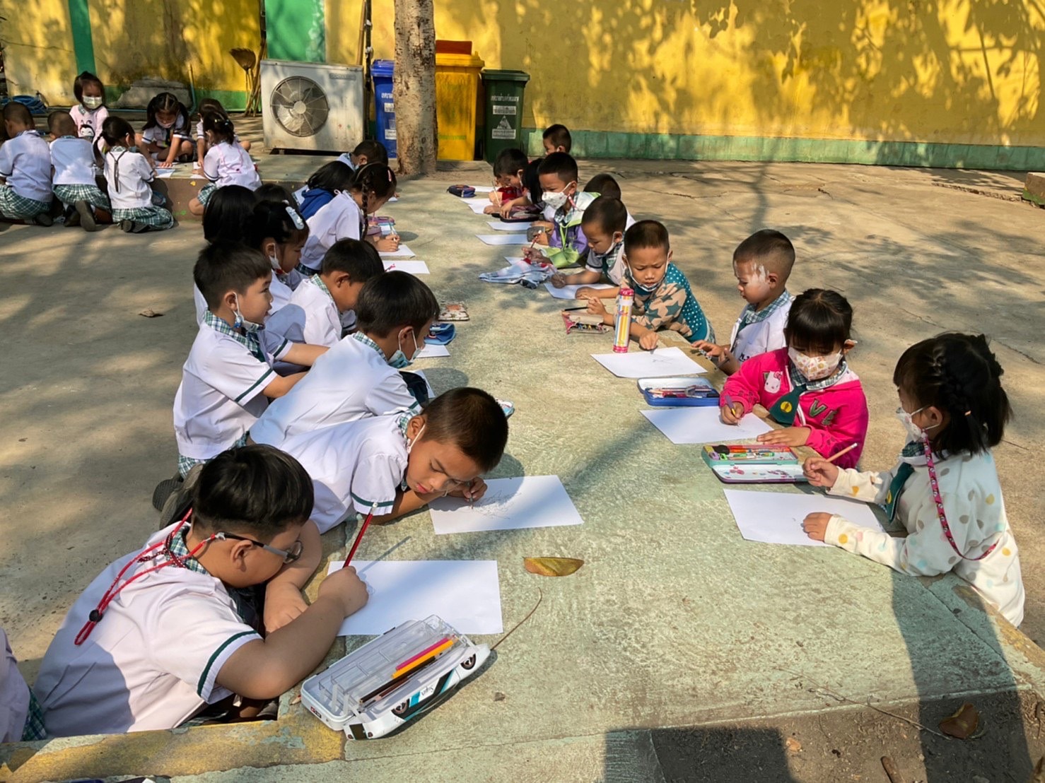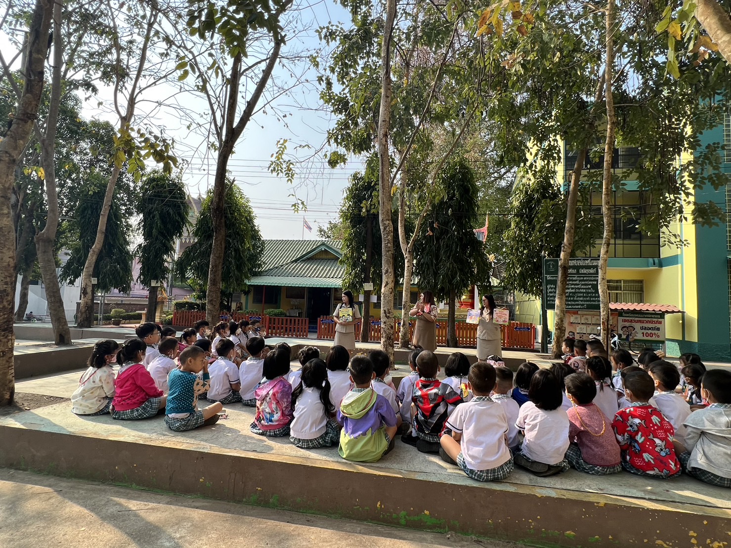 ซึ่งนักเรียนสายชั้นอนุบาล 2 โรงเรียนพนมมาศพิทยากร ได้รับจัดกิจกรรมการเรียนการสอนนอกห้องเรียนเพื่อเปลี่ยนบรรยากาศในการเรียนการสอนโดยการจัดการเรียนการสอนใช้สื่อนิทานในการจัดการเรียนการสอนให้เด็กได้ฟังนิทานทั้งสามเรื่อง เมื่อเด็กเด็กได้ฟังนิทานจบให้เด็กเด็กเลือกเล่มนิทานที่ตนสนใจพร้อมกับวาดภาพระบายสี ตามจินตนาการและความคิดสร้างสรรค์ลงบนกระดาษให้สวยงามในการจัดกิจกรรมการเรียนการสอนในครั้งนี้เป็นการเสริมสร้างจินตนาการและความคิดสร้างสรรค์ให้กับเด็กโดยการสร้างบรรยากาศที่เรียนแปลกใหม่ต่างจากห้องเรียนที่เรียนในทุกวัน ทั้งนี้ยังเป็นการพัฒนาการทั้ง 4 ด้าน ในด้านร่างกายอารมณ์สังคมและสติปัญญา และเป็นการส่งเสริมจินตนาการและความคิดสร้างสรรค์ให้กับเด็ก