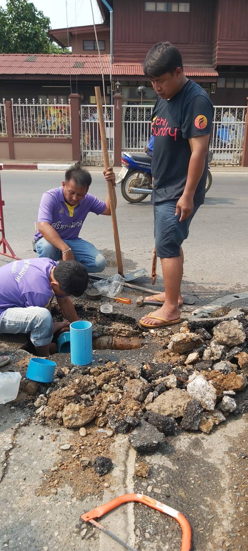 ซ่อมแซมท่อเมน 4" ถนนอินใจมี บริเวณสามแยกทางเข้าชุมชนยางกะไดเหนือ
