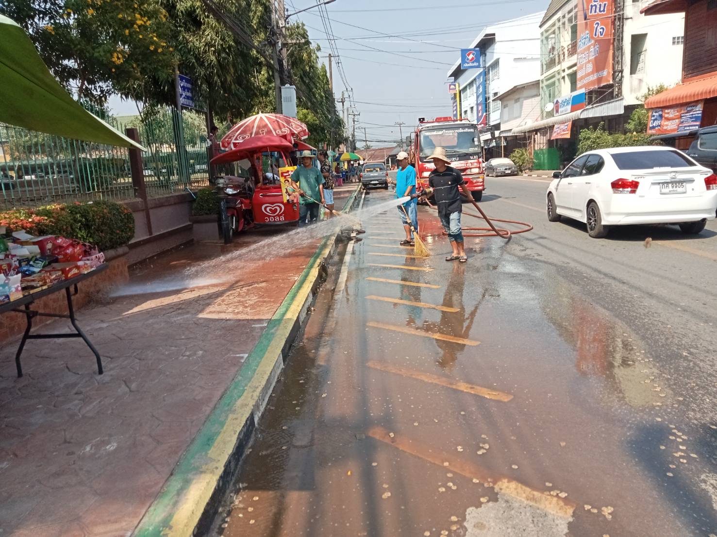 กองสาธารณสุขและสิ่งแวดล้อม ล้างถนนศรีพนมมาศ