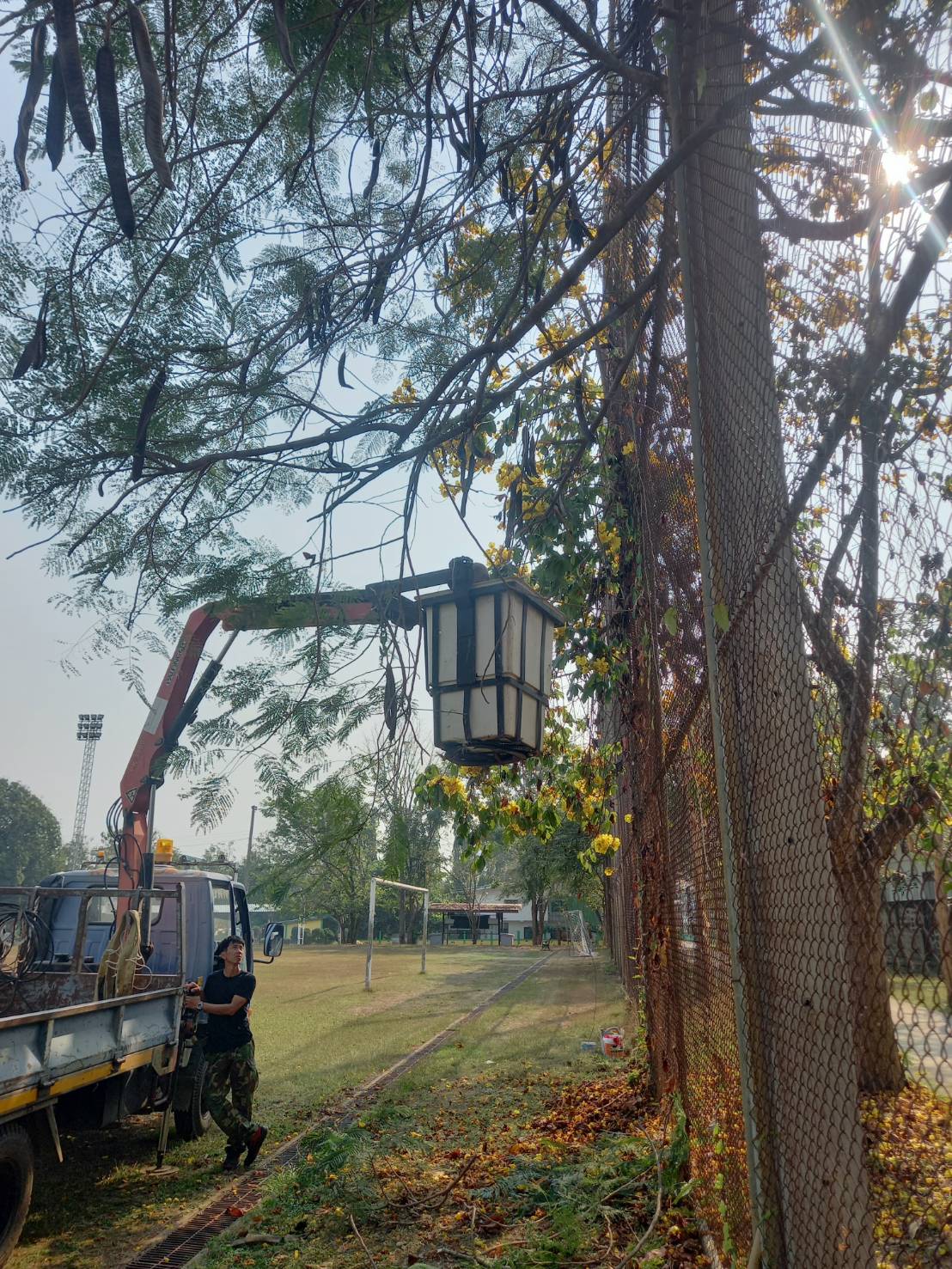 ตัดแต่งกิ่งไม้ บริเวณสนามกีฬาเทศบาลตำบลศรีพนมมาศ