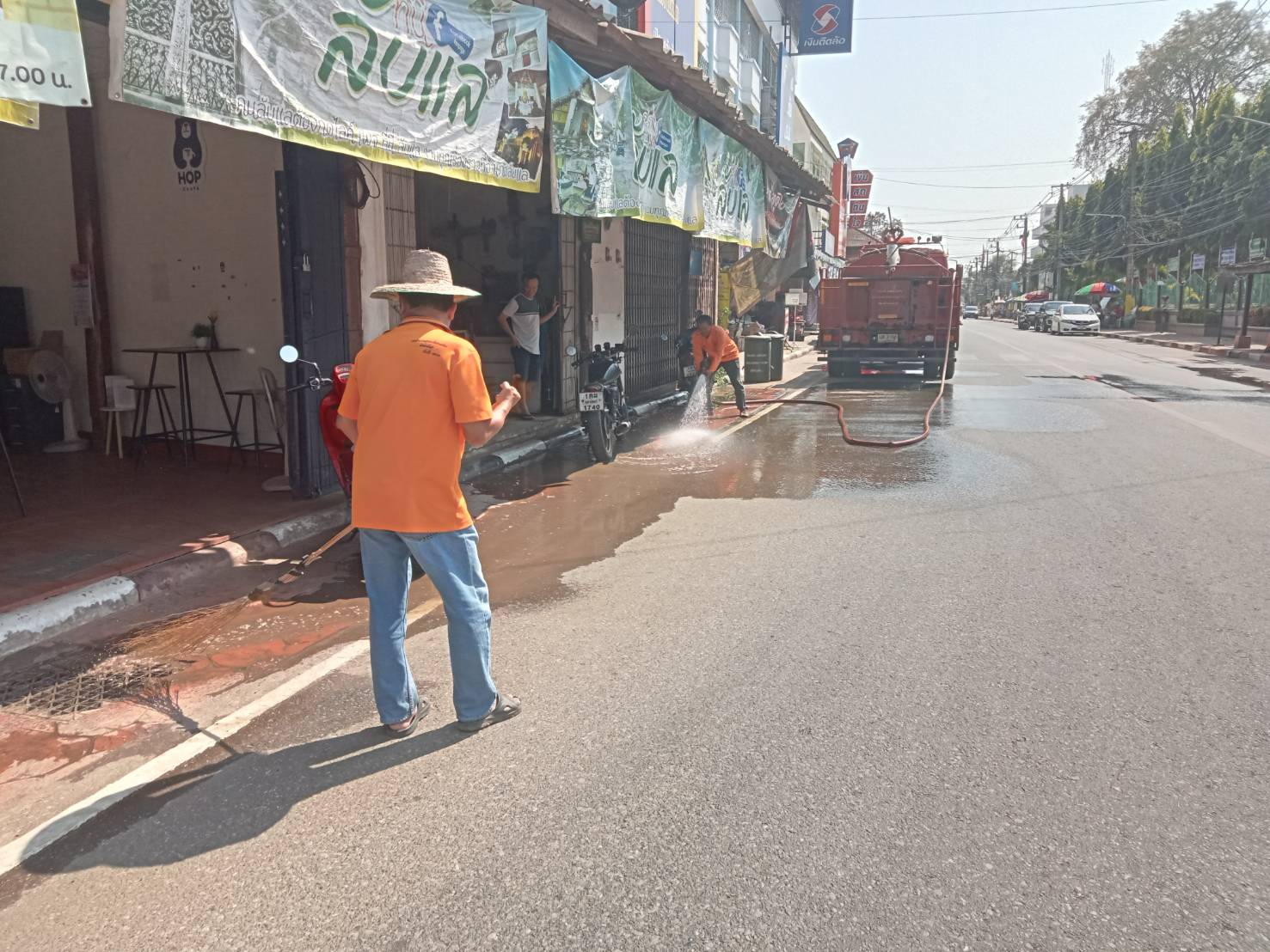 กองสาธารณสุขและสิ่งแวดล้อม ล้างถนนศรีพนมมาศ