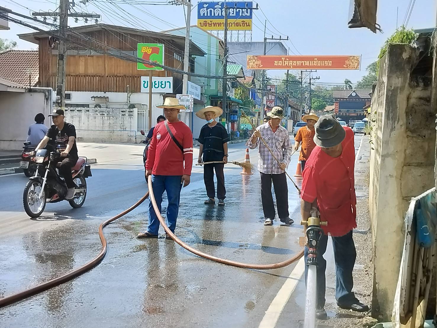 กองสาธารณสุขและสิ่งแวดล้อม ดำเนินการล้างถนน
