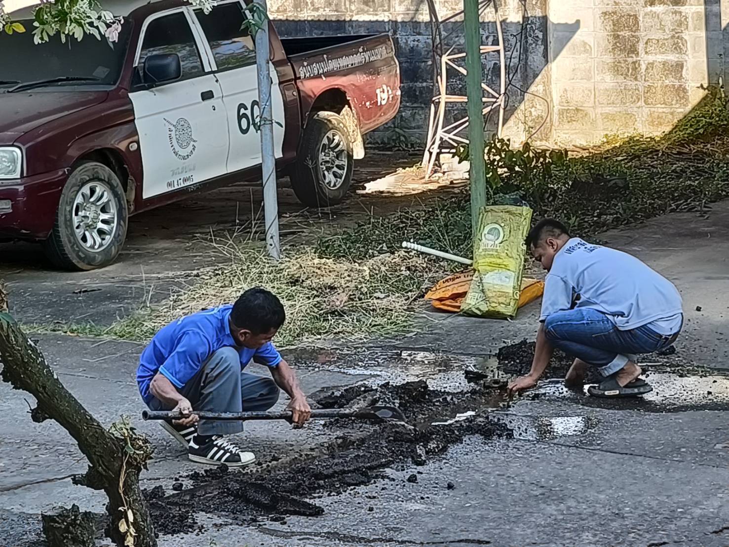 ซ่อมท่อเมนประปา 2"บริเวณข้างสำนักงานเทศบาล