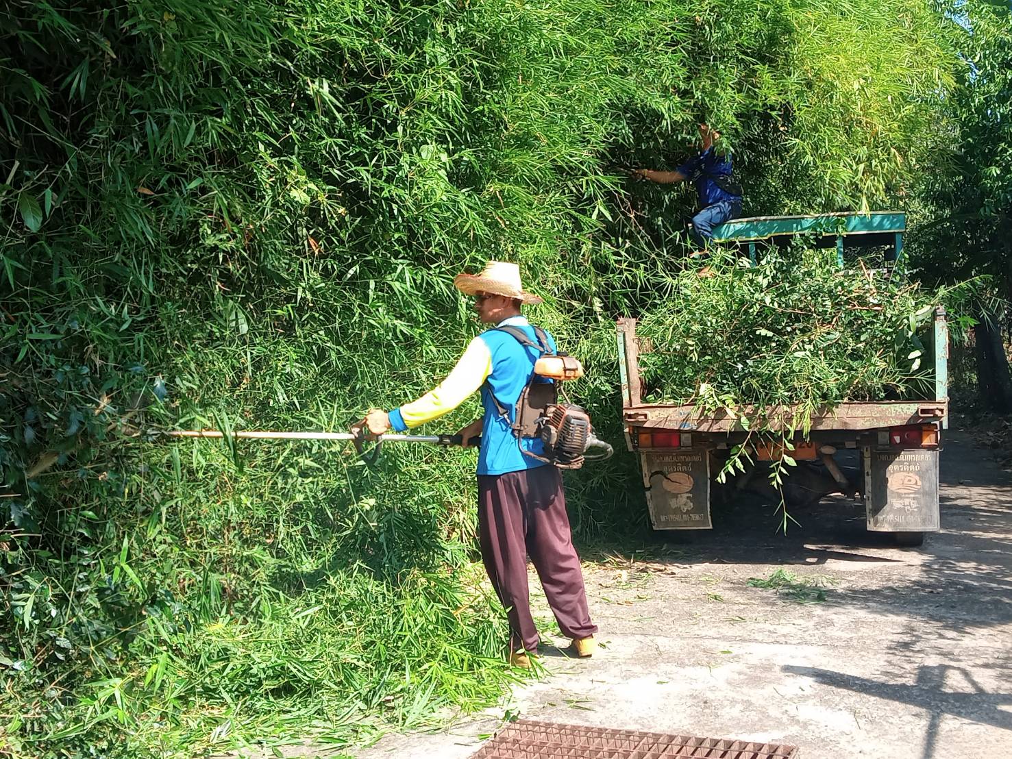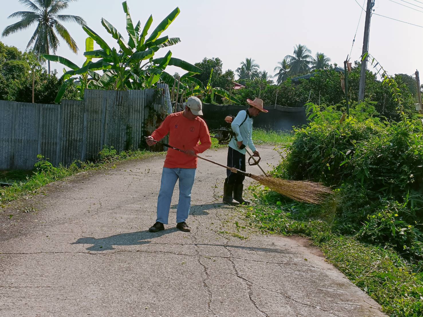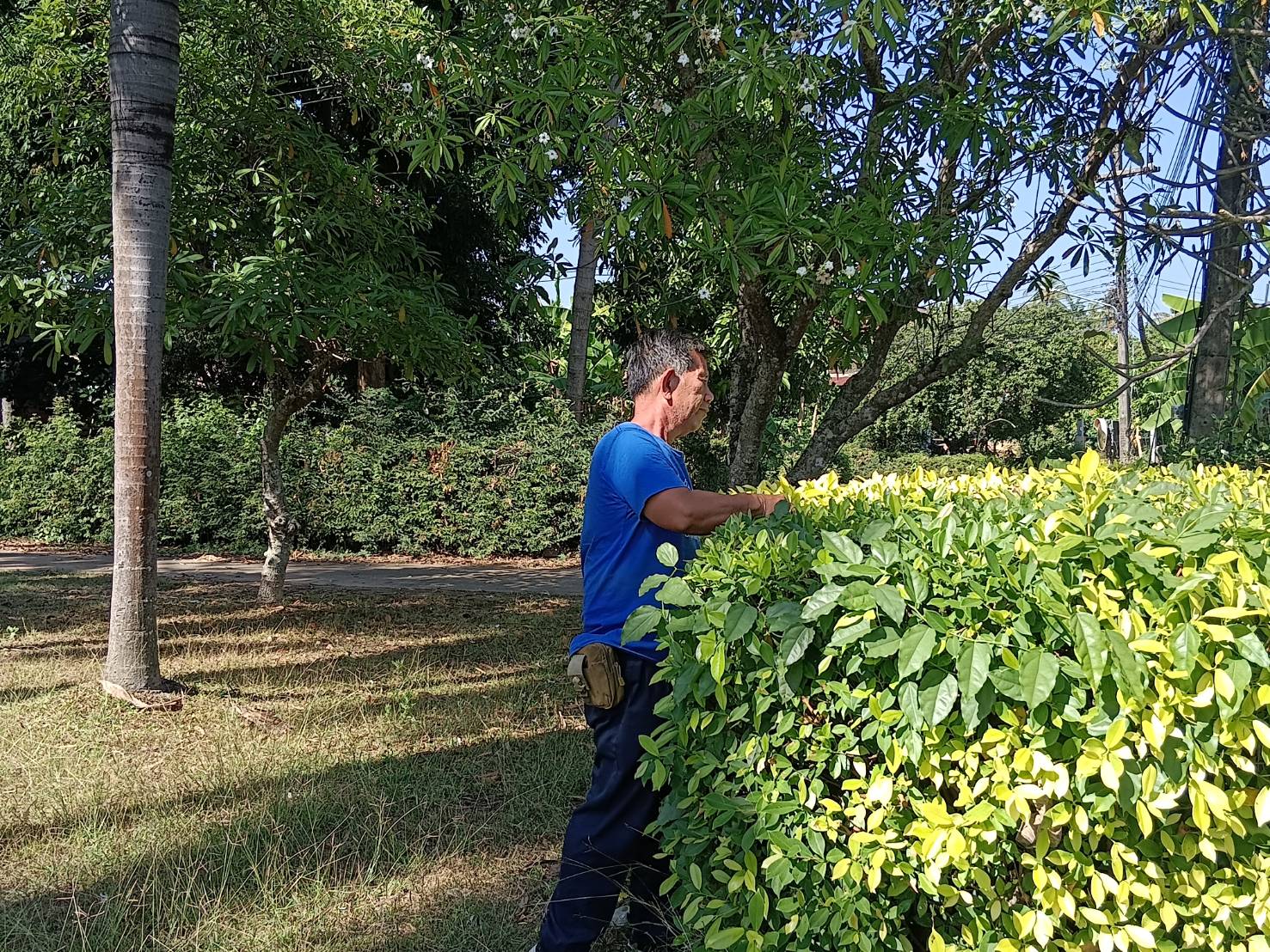 ตัดหญ้า ตกแต่งสวนหย่อม บริเวณสนามกีฬาชุมชนฟากท่า หัวร้อง ป่ายาง