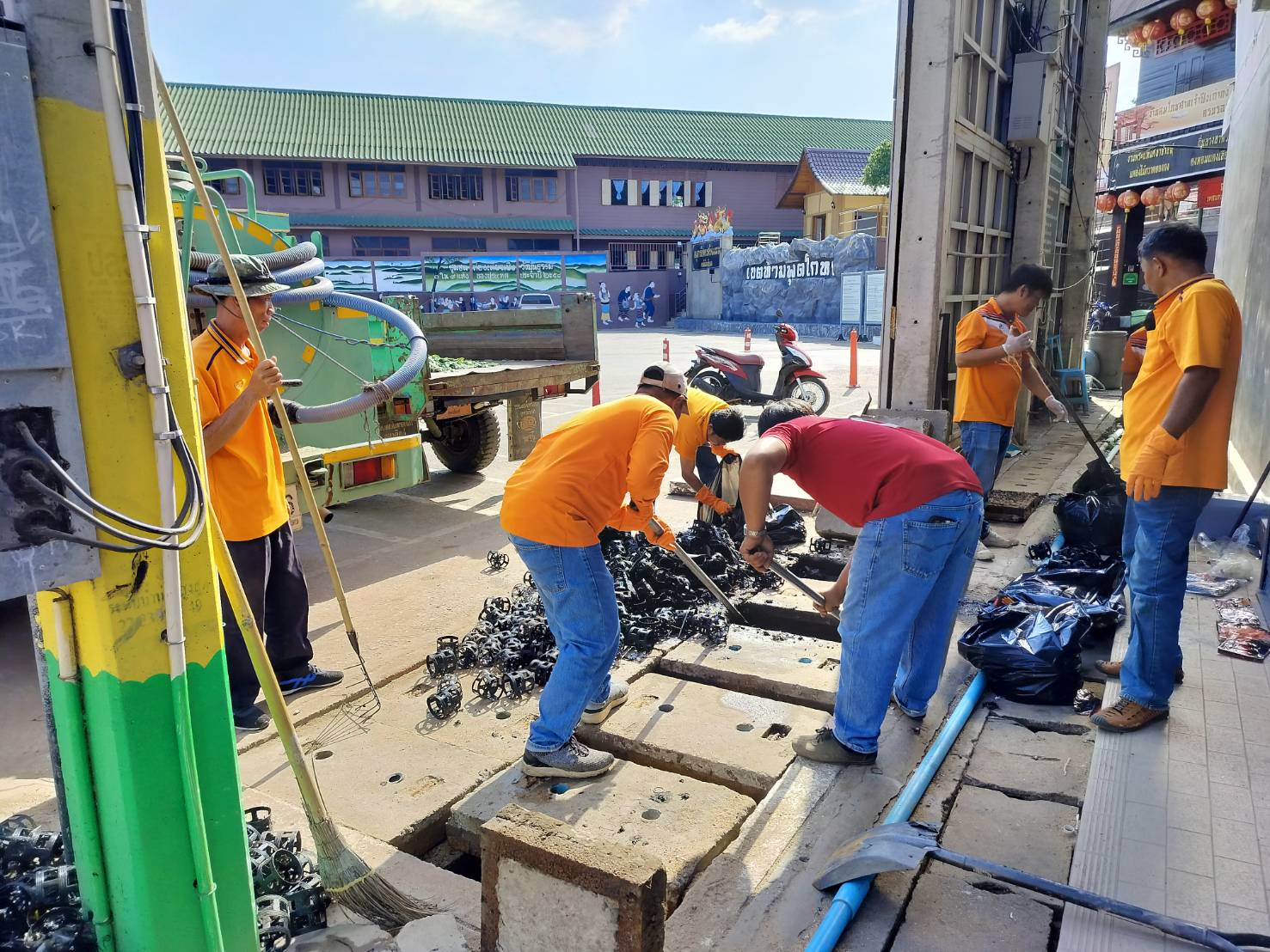กองสาธารณสุขฯ ทำความสะอาดบ่อดักไขมัน