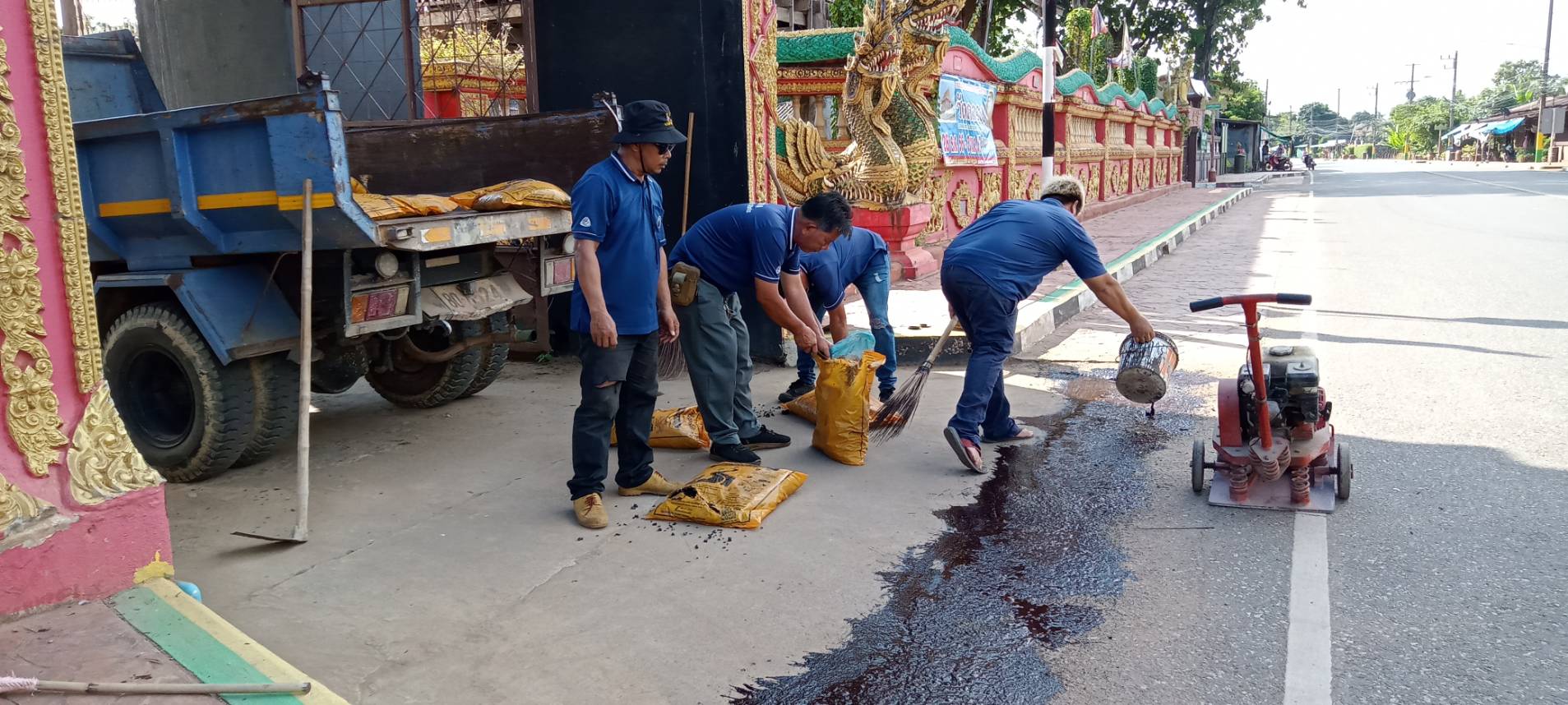 ซ่อมแซมถนนที่ชำรุด บริเวณวัดเสาหิน