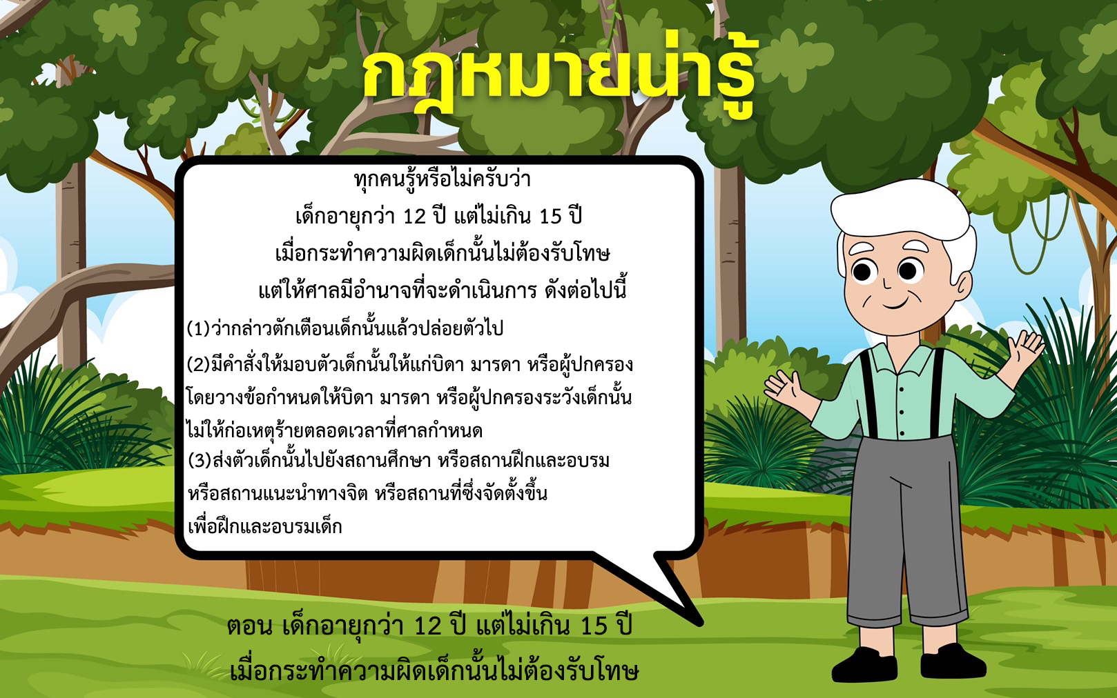 กฎหมายน่ารู้ : ตอน เด็กอายุกว่า 12 ปี แต่ไม่เกิน 15 ปี เมื่อกระทำความผิดเด็กนั้นไม่ต้องรับโทษ