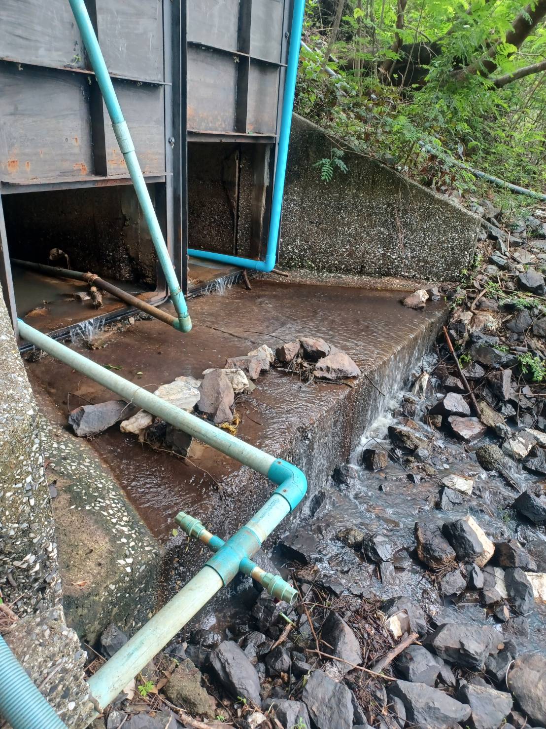 รายงานน้ำทางประตูน้ำด้านท้ายของอ่างเก็บน้ำหนองนาเกลือ