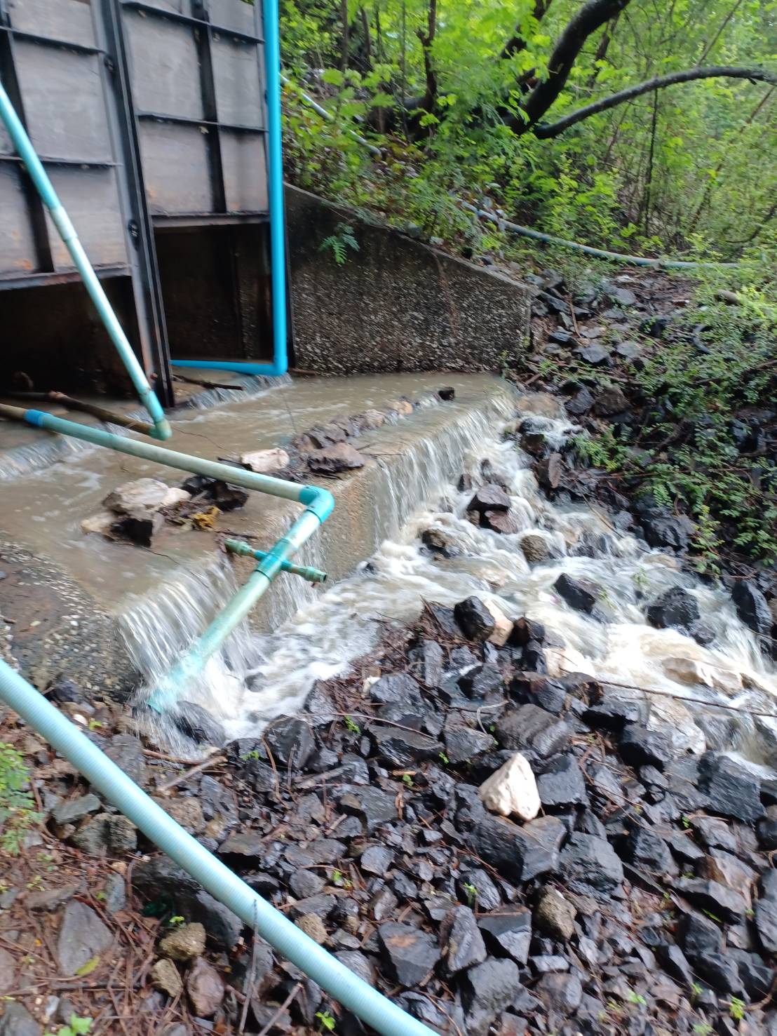 รายงานสถานการณ์น้ำจากคลองแม่อินทร์หน้าวัดป่ายาง ไหลลงท่อผันน้ำลงอ่างเก็บน้ำหนองนาเกลือ