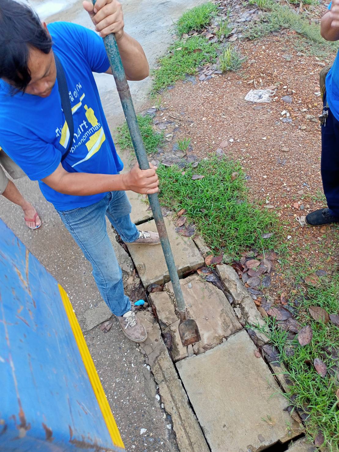ดำเนินการซ่อมแซมฝารางระบายน้ำ หน้าบ้านนายเฉลิม วงษ์สุวรรณ ชุมชนคอกช้าง