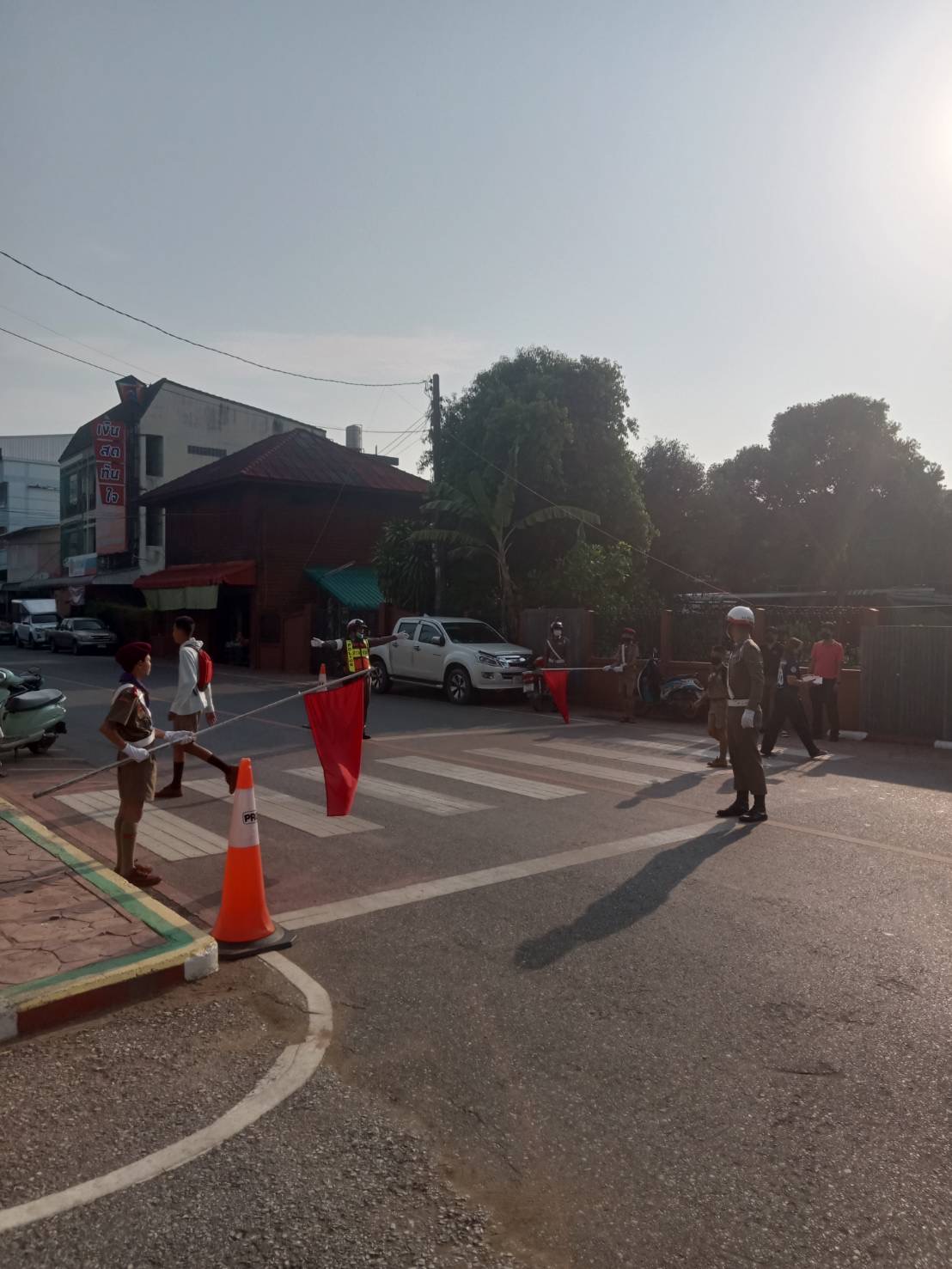 การปฏิบัติหน้าที่ของลูกเสือ-ยุวกาชาดจราจร โรงเรียนพนมมาศพิทยากร