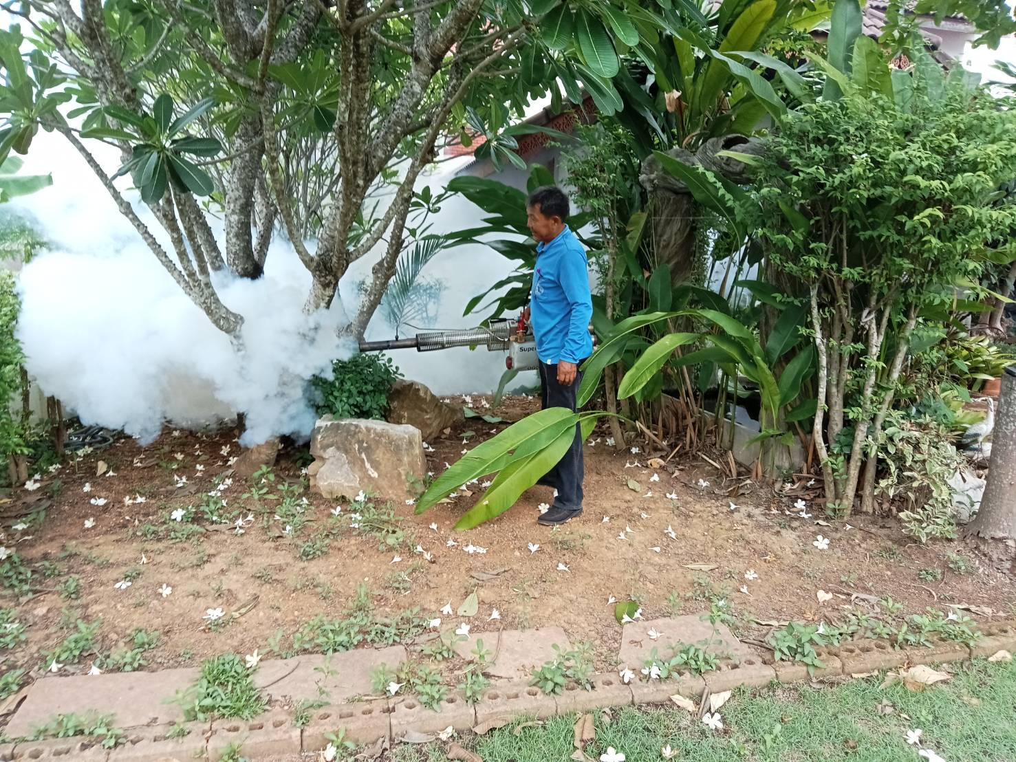 กองสาธารณสุขฯ ร่วมกับ อสม.ชุมชนตลาดลับแล พ่นหมอกควันกำจัดยุง