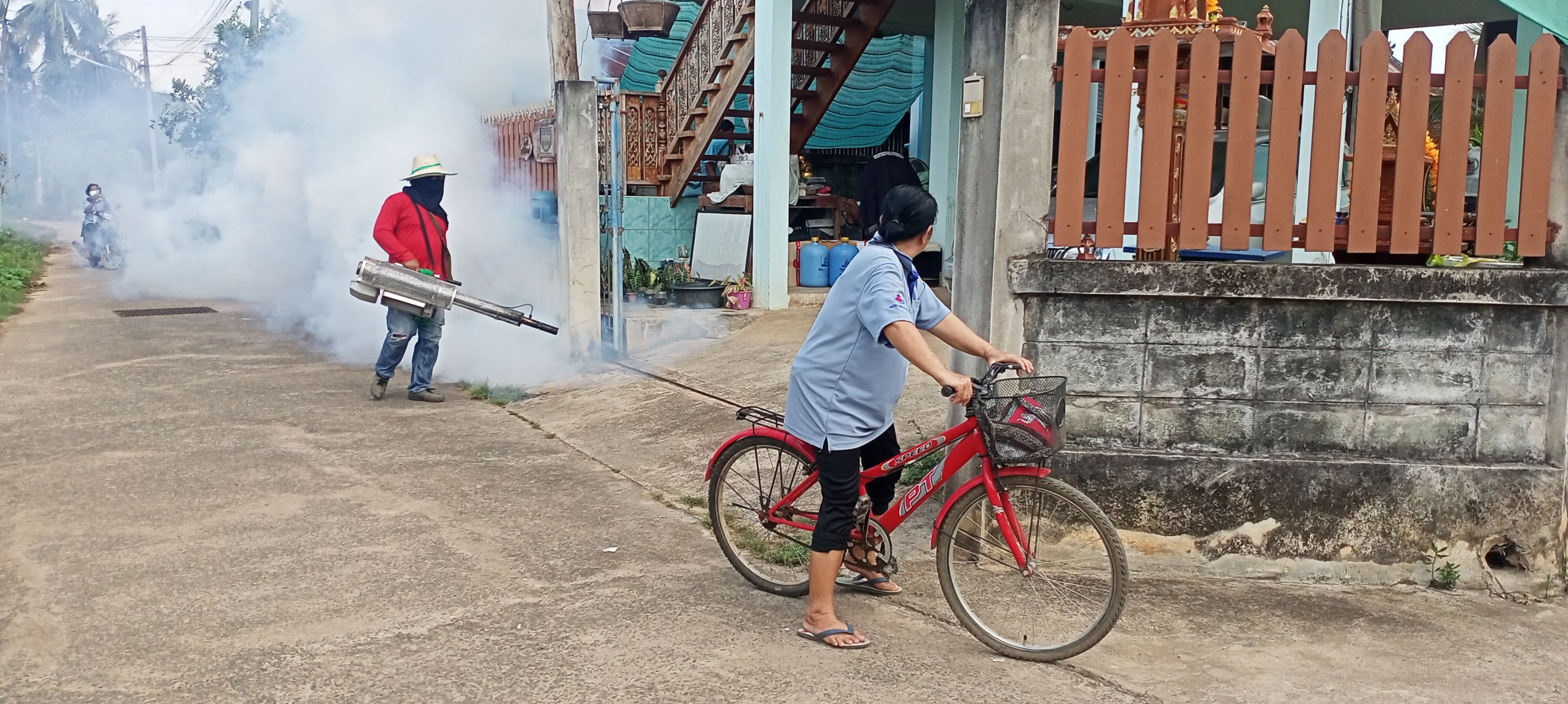 กองสาธารณสุขและสิ่งแวดล้อม ร่วมกับ ร่วมกับ อสม.ชุมชนฟากท่า หัวร้อง ป่ายาง ดำเนินการพ่นหมอกควันกำจัดยุง