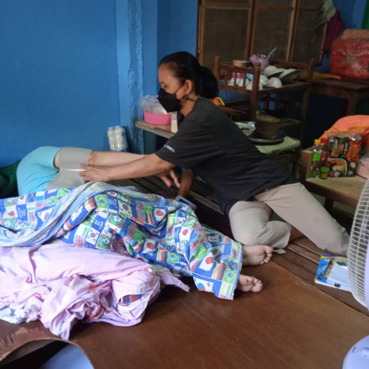 ผู้ดูแลผู้สูงอายุ ลงพื้นที่ปฏิบัติหน้าที่ในการเยี่ยมผู้ป่วยที่มีภาวะพึ่งพิง ในเขตเทศบาลตำบลศรีพนมมาศ