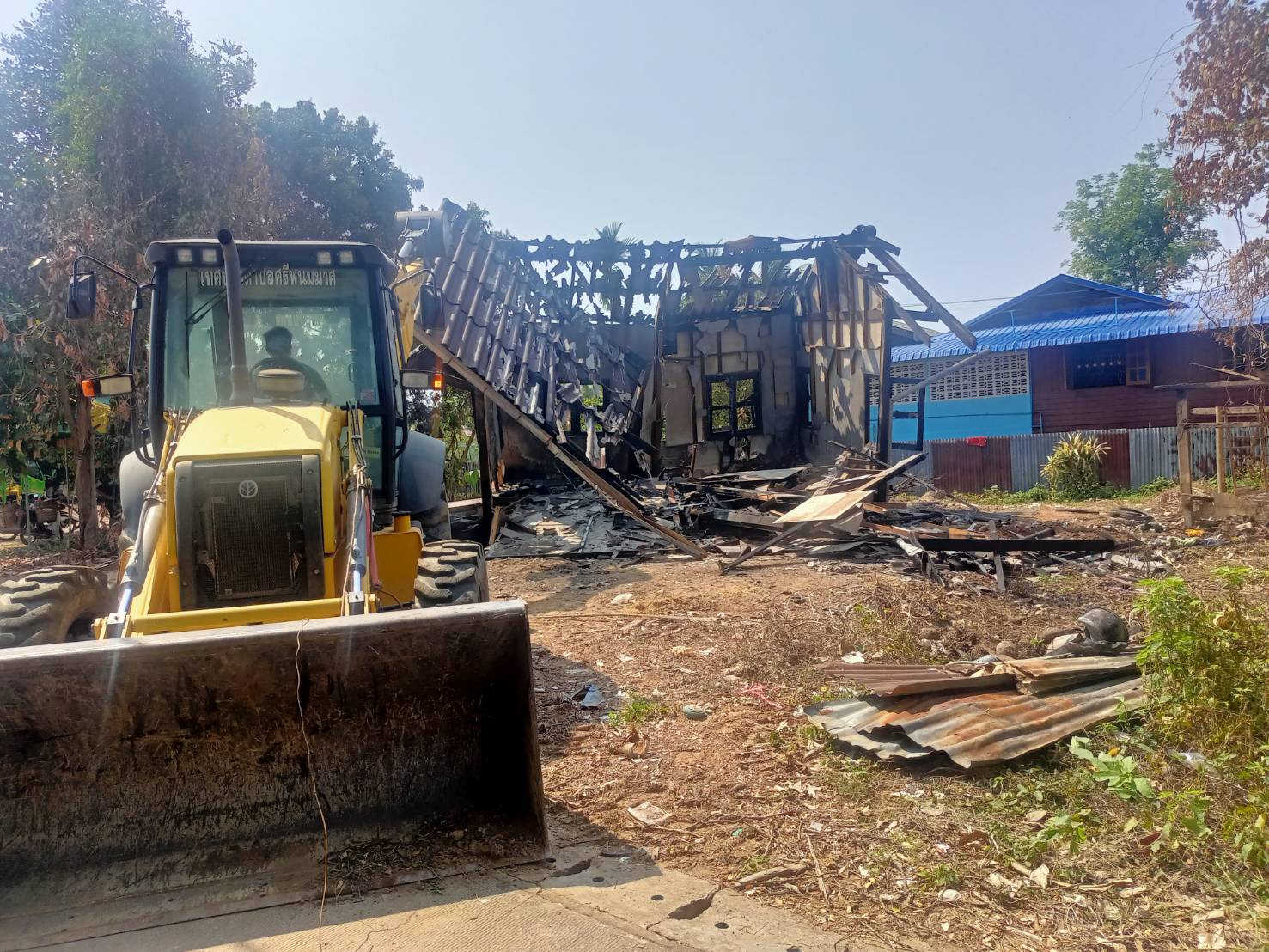 รื้อถอนบ้าน รายนายสมศักดิ์ สานสนทิ ชุมชนฟากท่า หัวร้อง ป่ายาง ที่ไฟไหม้ เมื่อวันที่ 12 เมษายน 2566