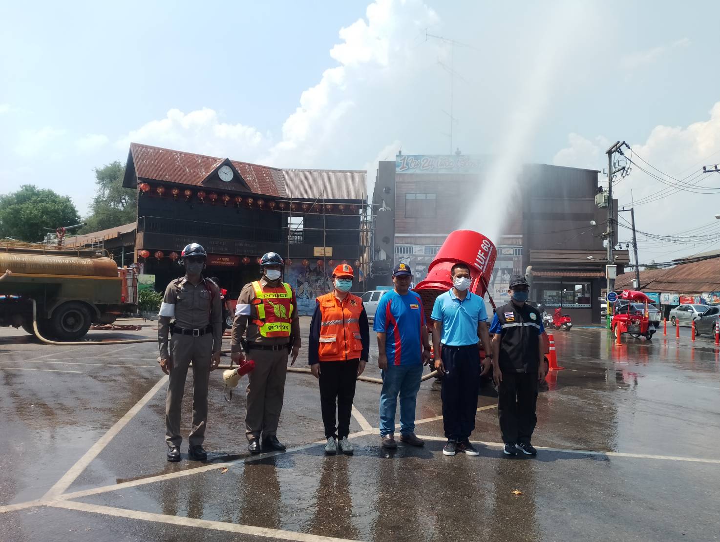 งานป้องกันฯ ให้การสนับสนุนรถบรรทุกน้ำเพื่อลดปริมาณฝุ่นละอองข...