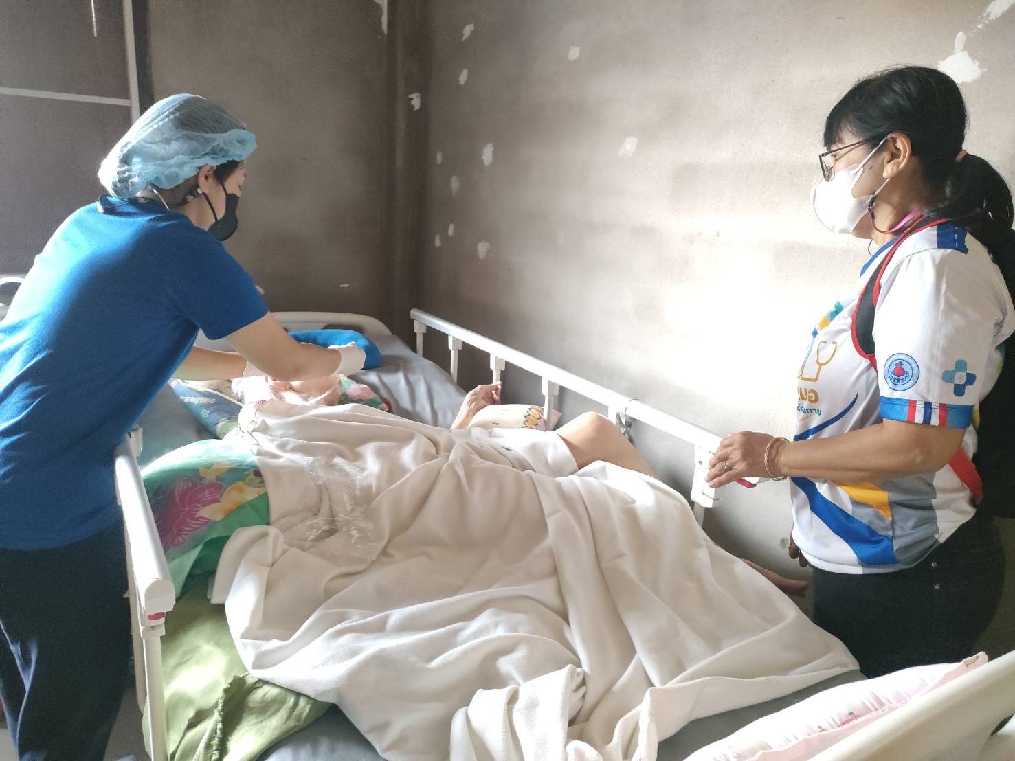 งานศูนย์บริการฯ ลงพื้นที่ร่วมกับ อสม.บ้านหนองผู้รับผิดชอบครัวเรือน เยี่ยมและให้บริการเปลี่ยนสายให้อาหารทางจมูกให้กับผู้ป่วยติดเตียง ณ ชุมชนบ้านหนอง