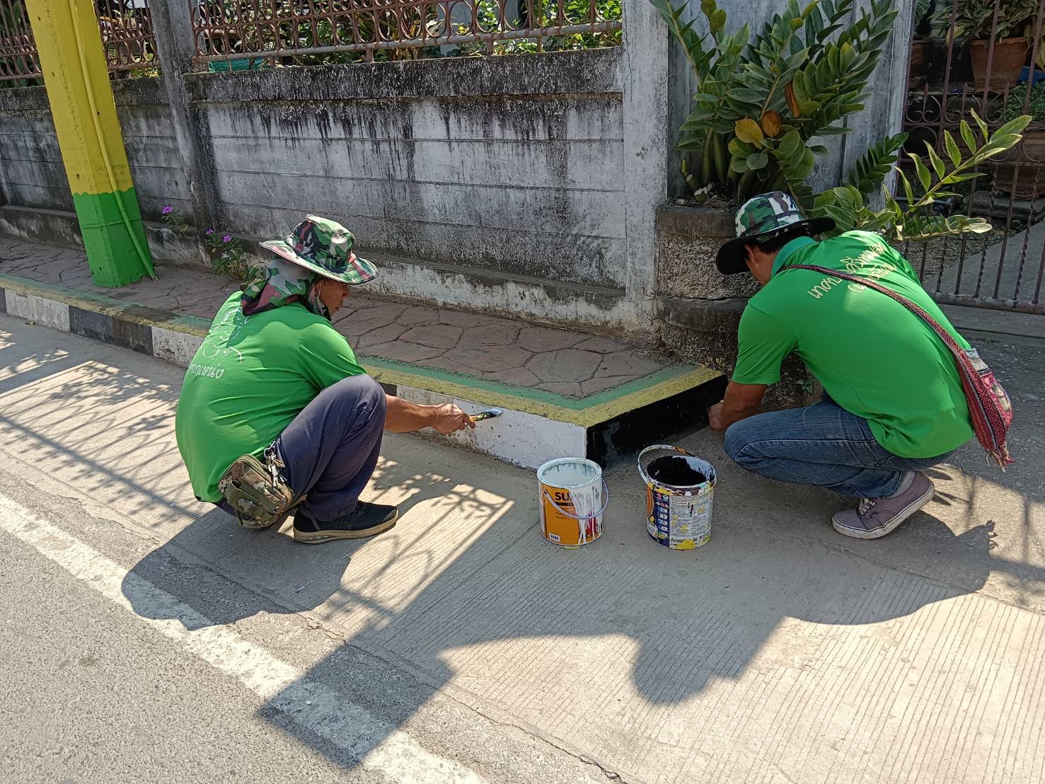 ทาสีฟุตบาท บริเวณถนนเขาน้ำตก